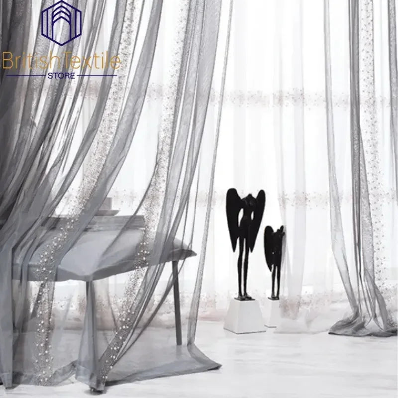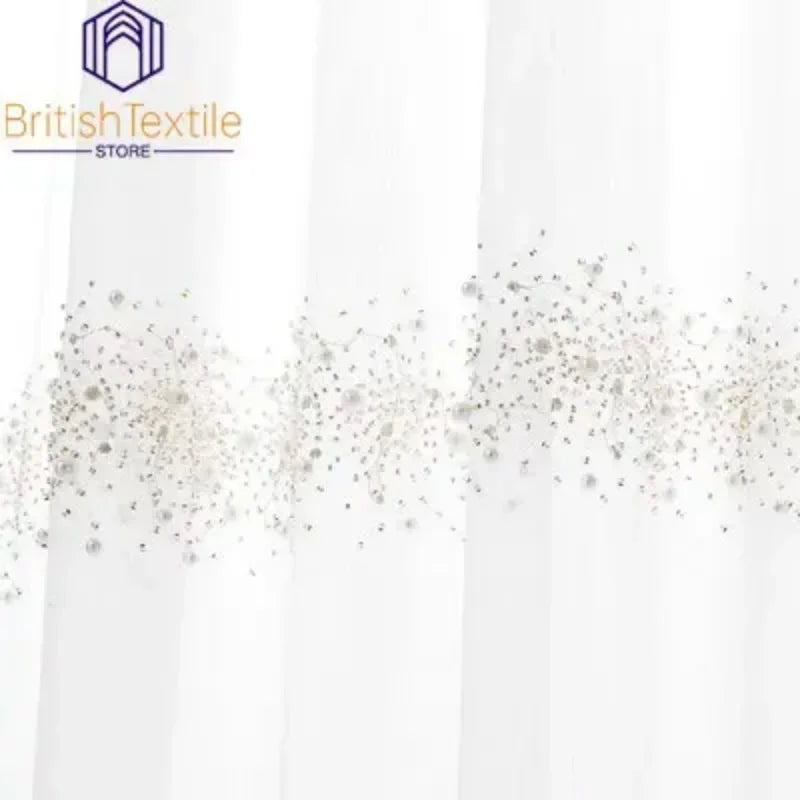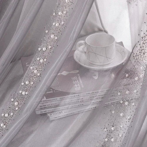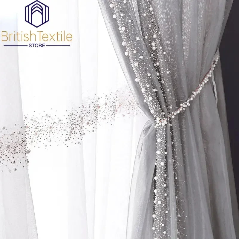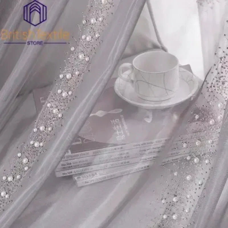 Light Luxury Curtains for Living Room Bedroom Nordic French Pearl Tulle Villa Window Screen Luxury High-end White Gray