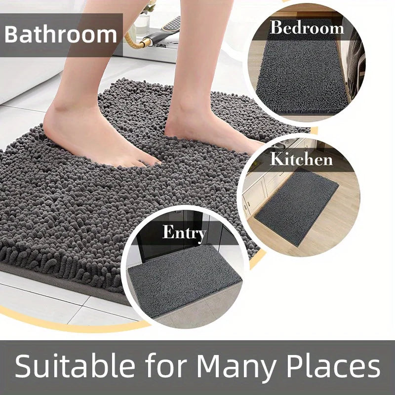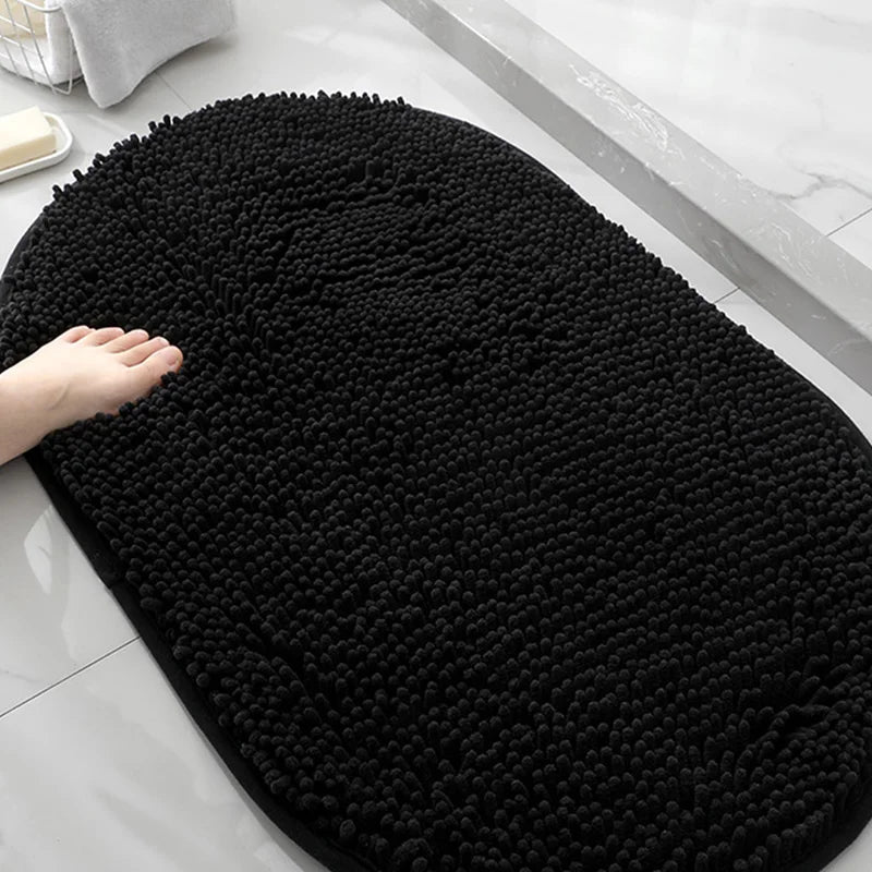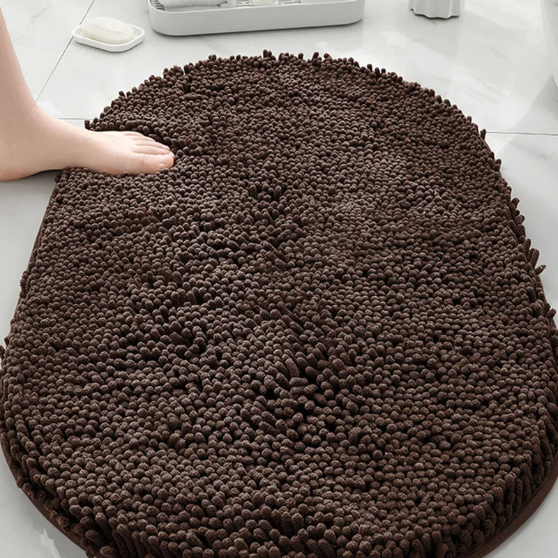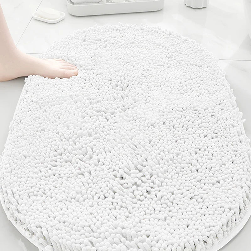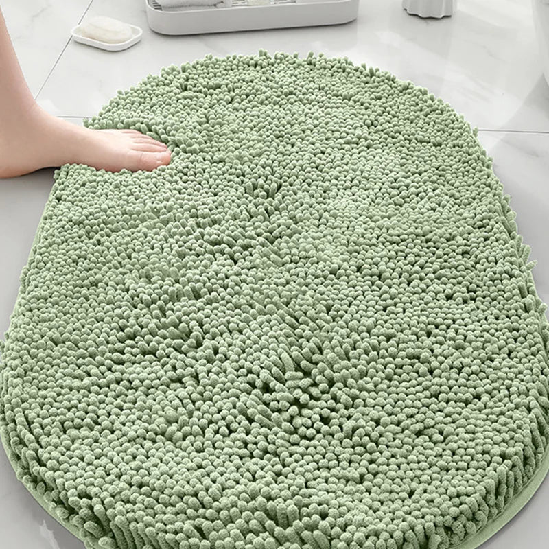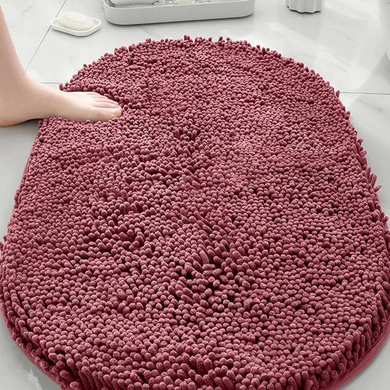 Machine washable solid color floor mat, oval shaped bathroom anti slip mat, soft door mat for entry and exit