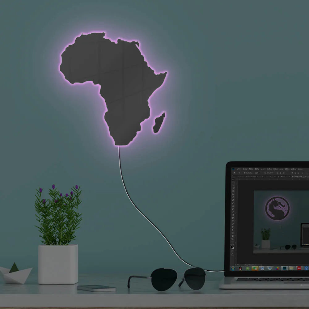 Map Of Africa Light Up Neon Sign For Bedroom Office Glowing African Map Geography Luminous Wall Mirror LED Lighting Home Decor