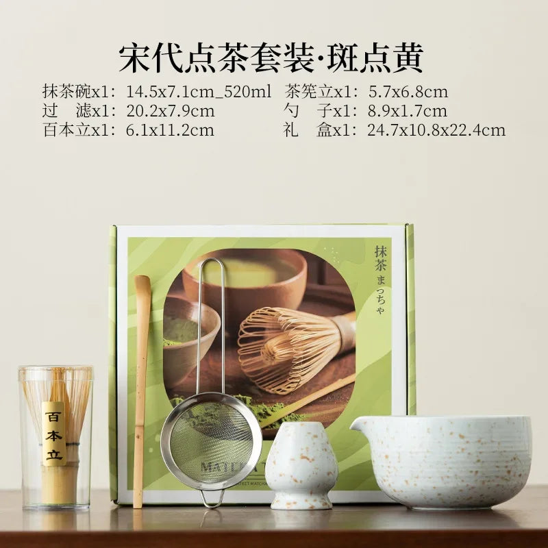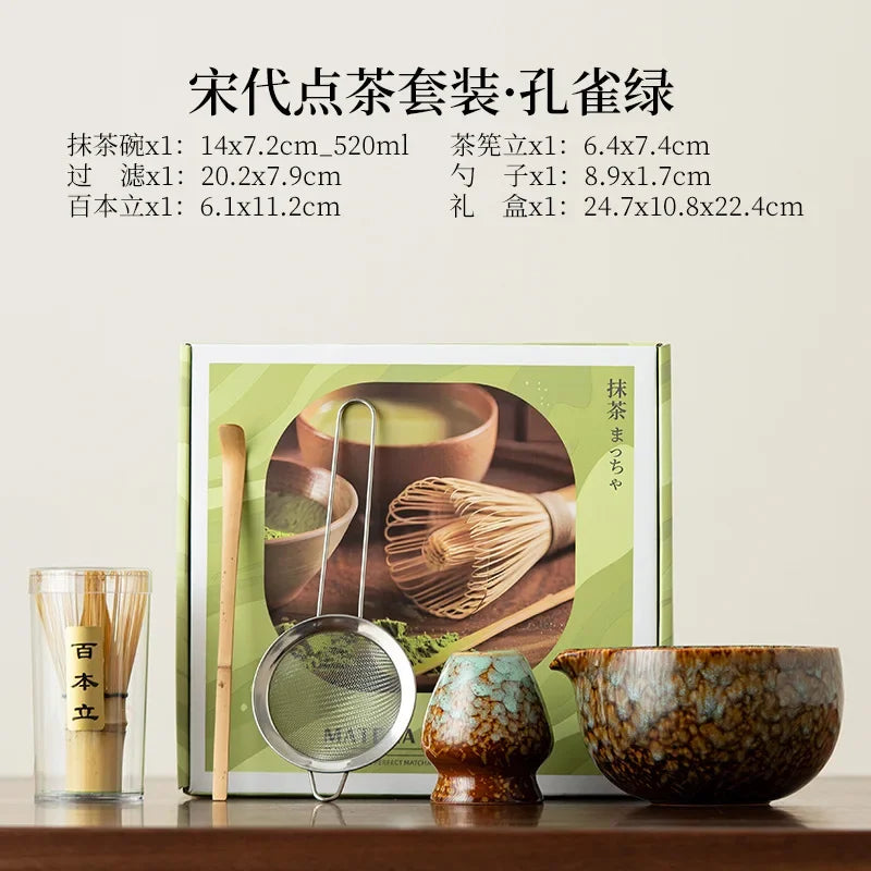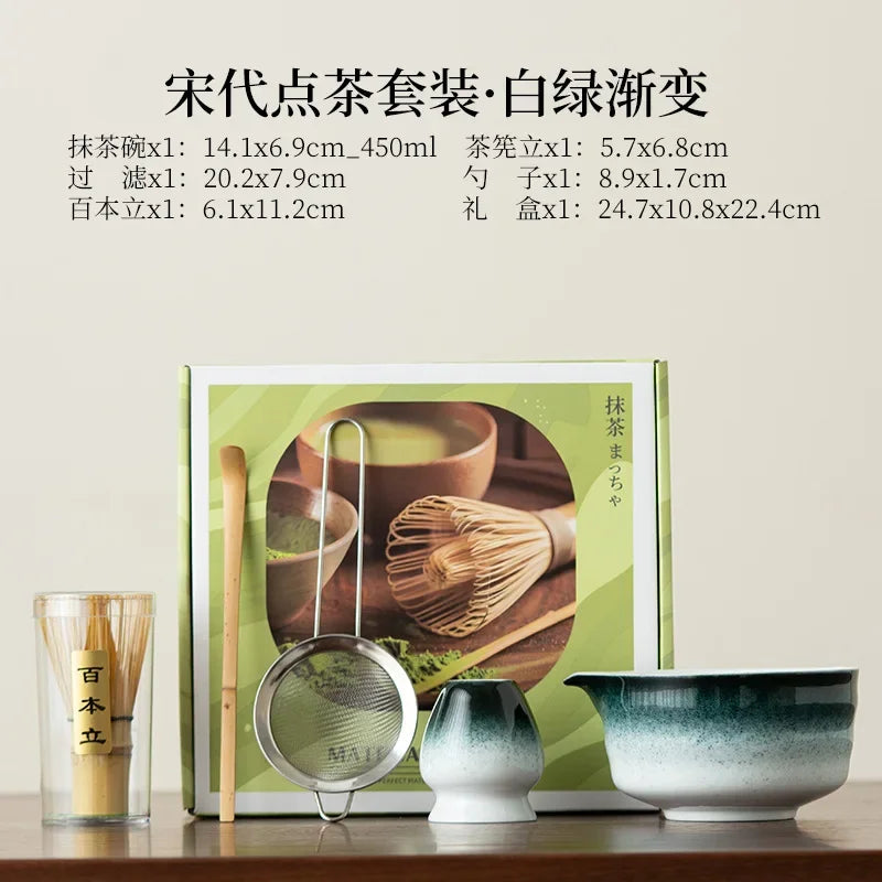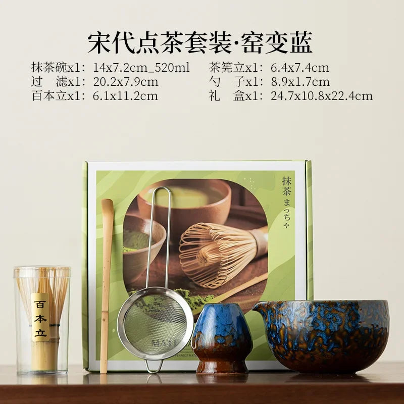 Matcha Whisk Set- Matcha Set includes Matcha Whisk and Bowl (Matcha Bowl), Sifter, Holder and Scoop Bamboo Whisk for Matcha Tea
