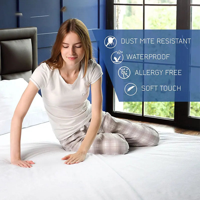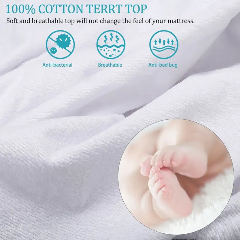 Mattress Cover Cotton Terry Cloth Waterproof Mattress Protector Deep Pocket Sheet Protector Washable & Anti Mites