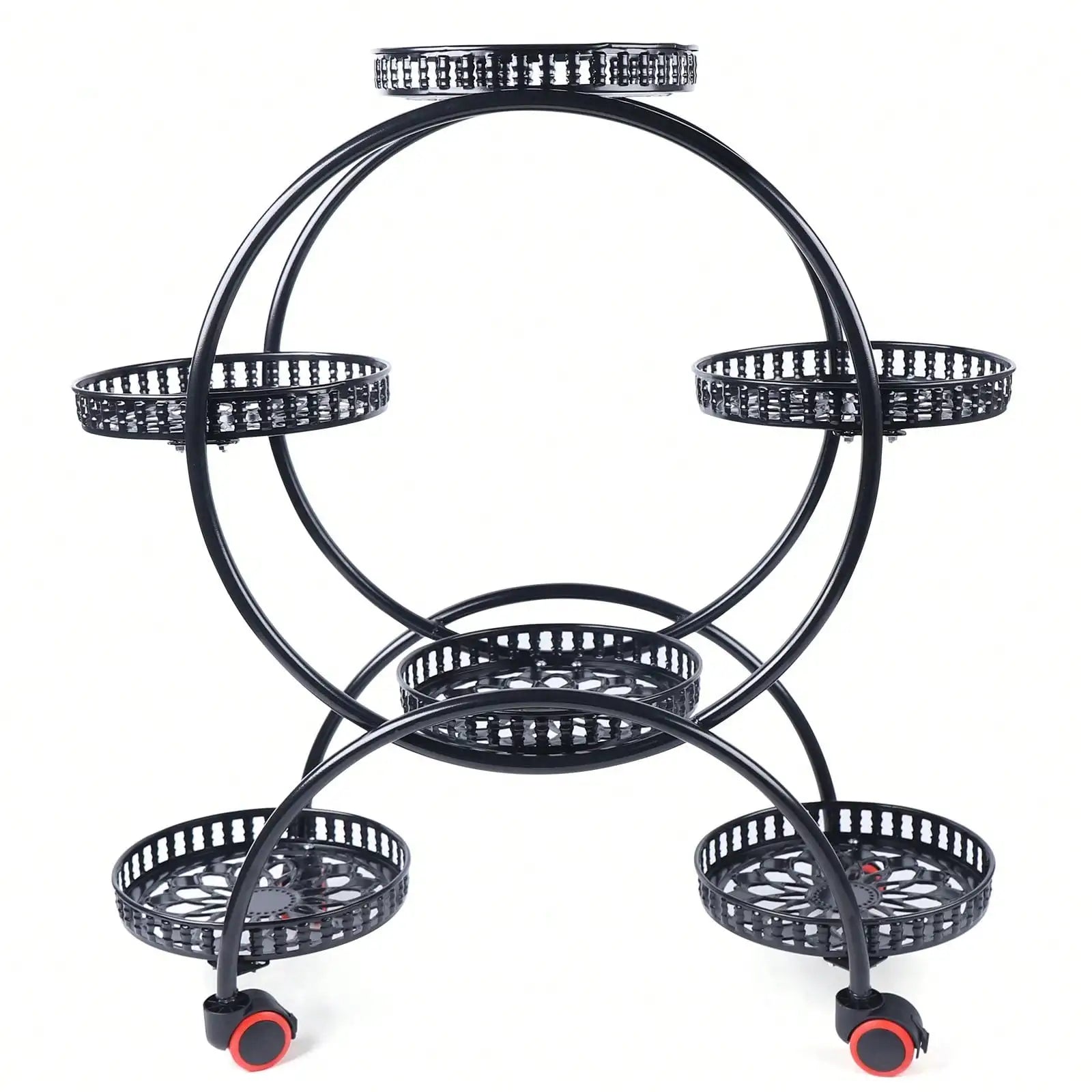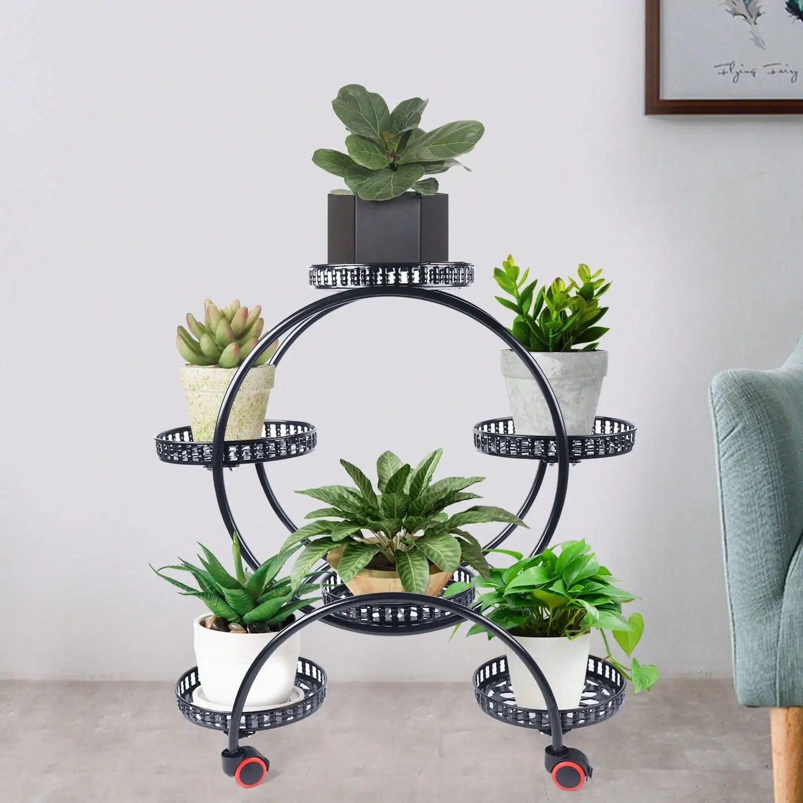 Metal Plant Stands 6 Pots Plants Flower Stand for Patio Garden Living Room Corner Balcony and Bedroom (Black/ White)
