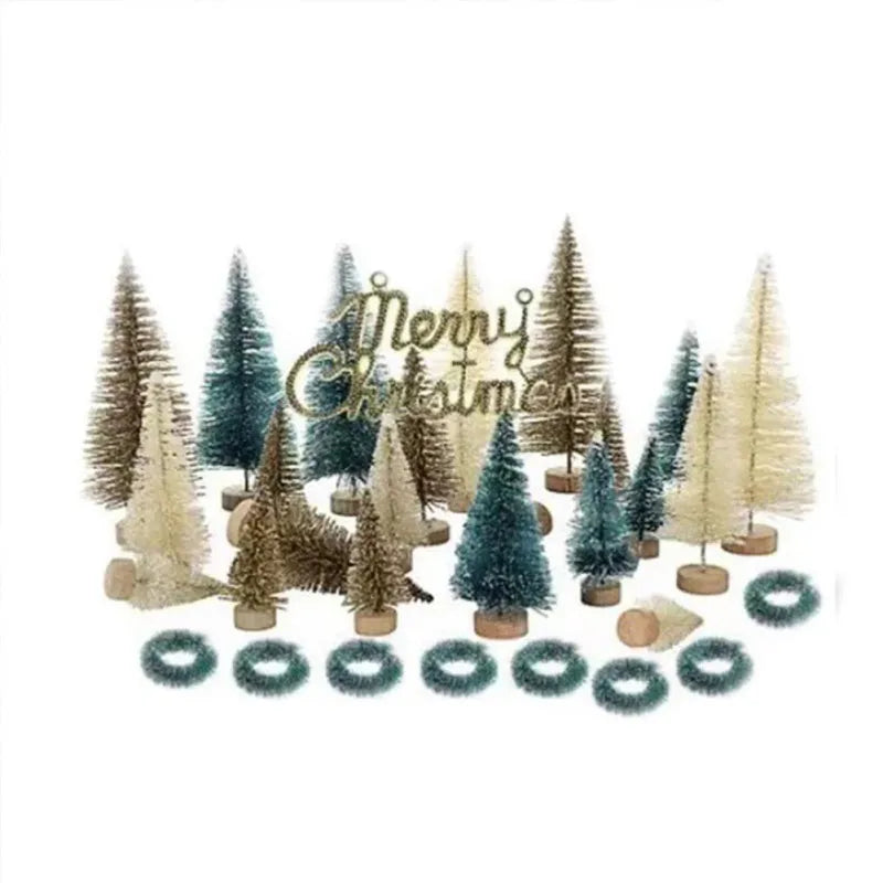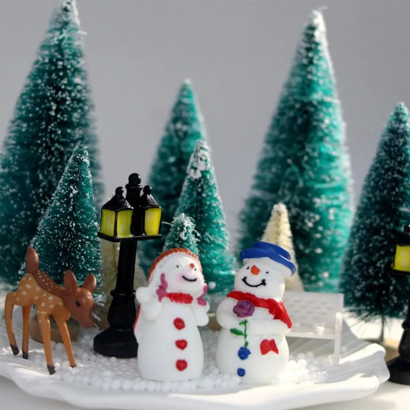 Mini Christmas Tree Fake Snow Frost Pine Trees Xmas Home Table Miniature Landscape Ornament Lifelike Christmas Tree Decor Craft