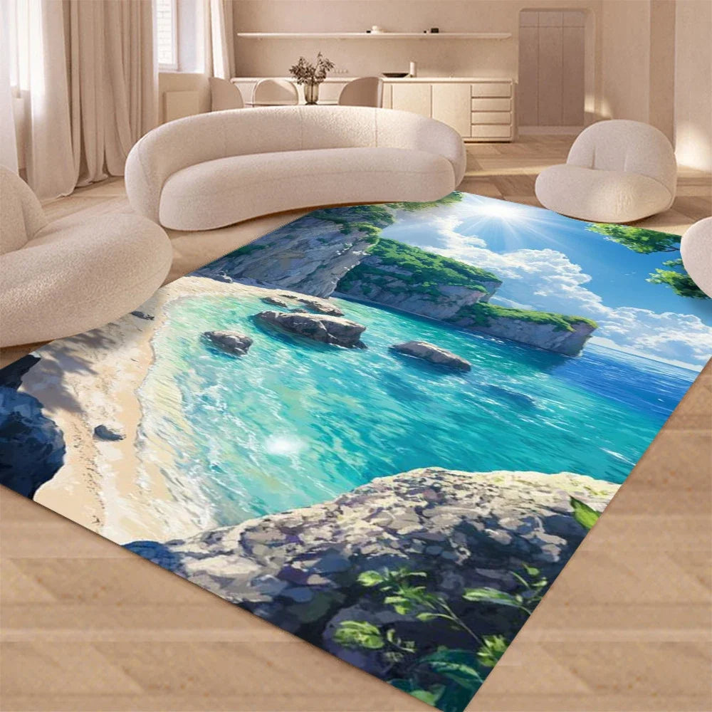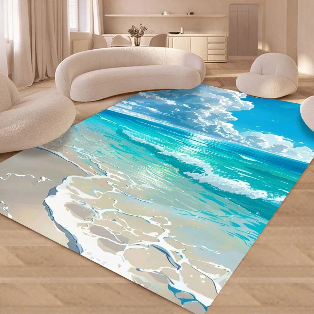 MINISO Disney Summer Beach Waves Carpet Rug for Home Living Room Bedroom Sofa Doormat Decor,kids Game Area Rug Floor Mat Gift