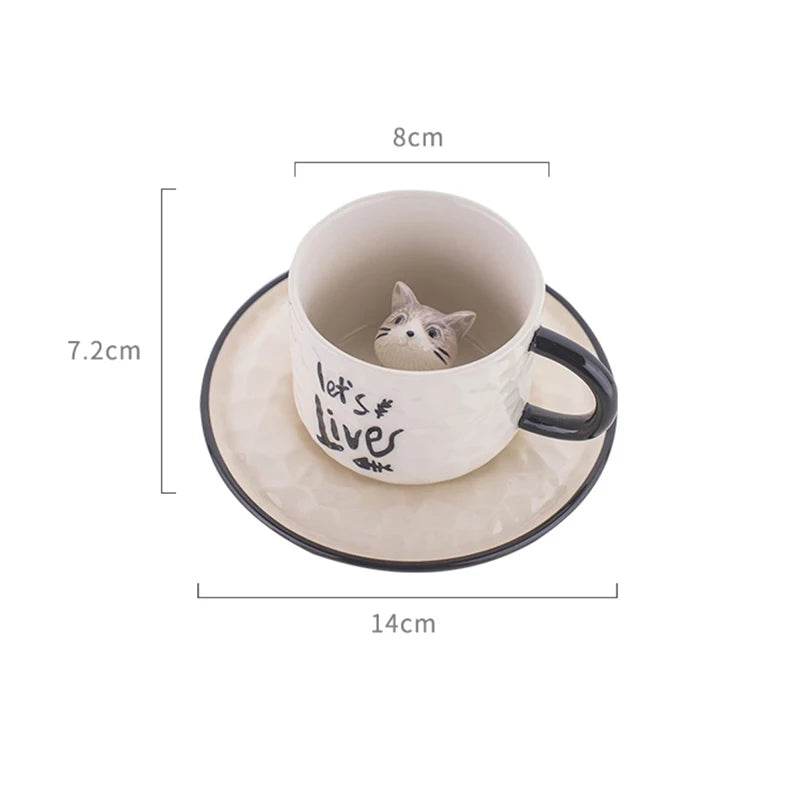 Modern Cartoon Cute Cat Ceramic Coffee Cup with Saucer Cute Cat Animal Porcelain Mug for Kids Birthday Gift Breakfast Milk Mug