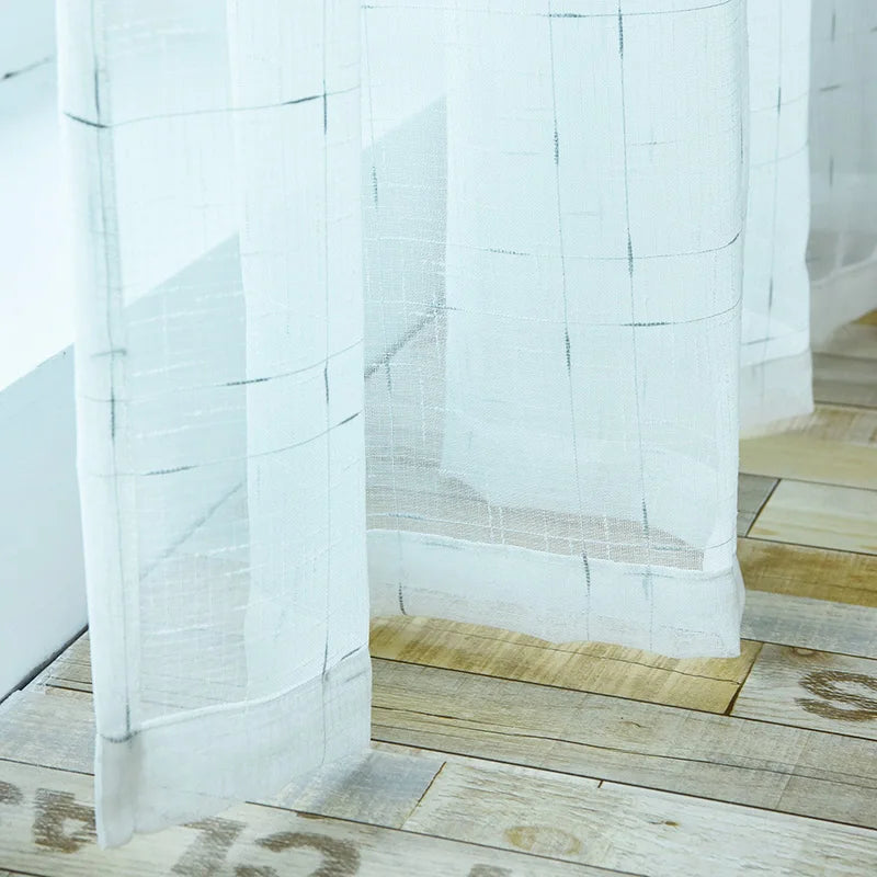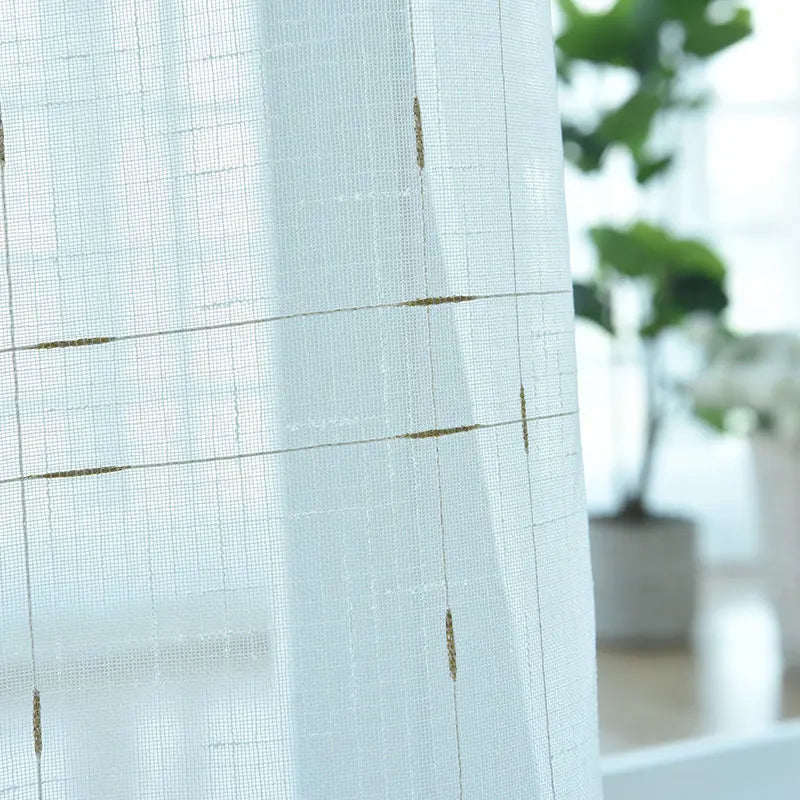 Modern Linen Tulle Curtain Window Screening Drapes for Living Room Gold Plaid Sheer Voile Curtains for Kitchen Blind Home Decor