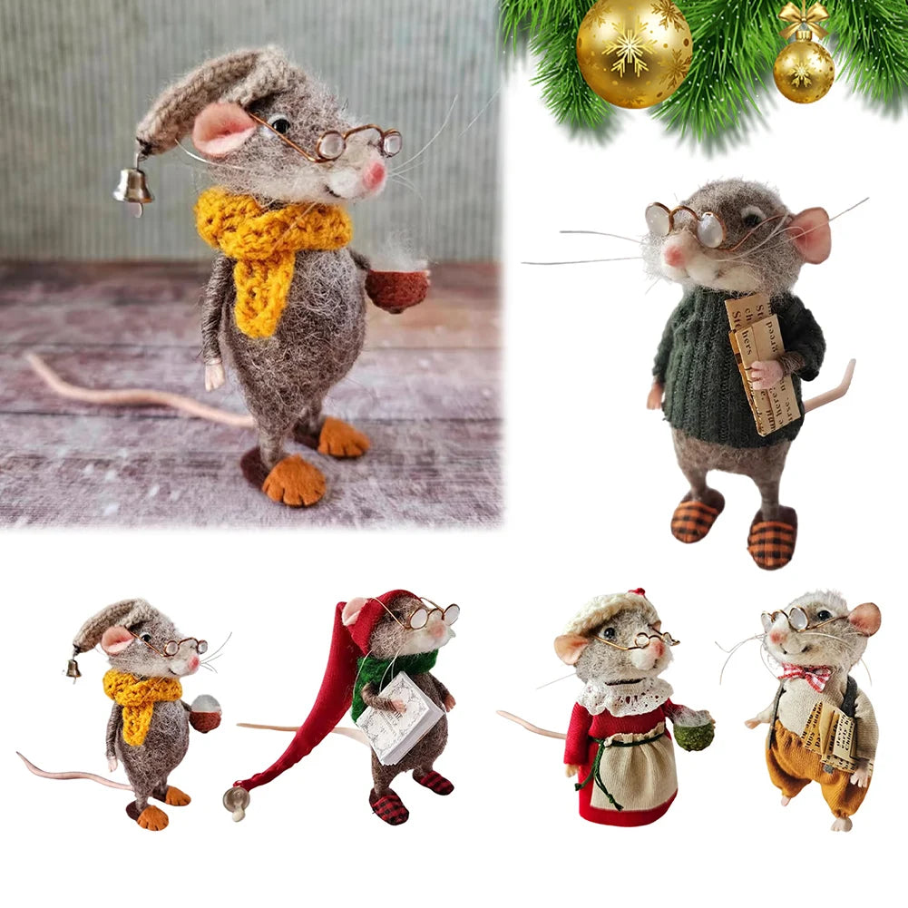 Mouse Doll Christmas Needle Felted Mouse Craft Decoration Needle Felted Christmas Cute Needle Felted Mouse Handmade Wool Felted