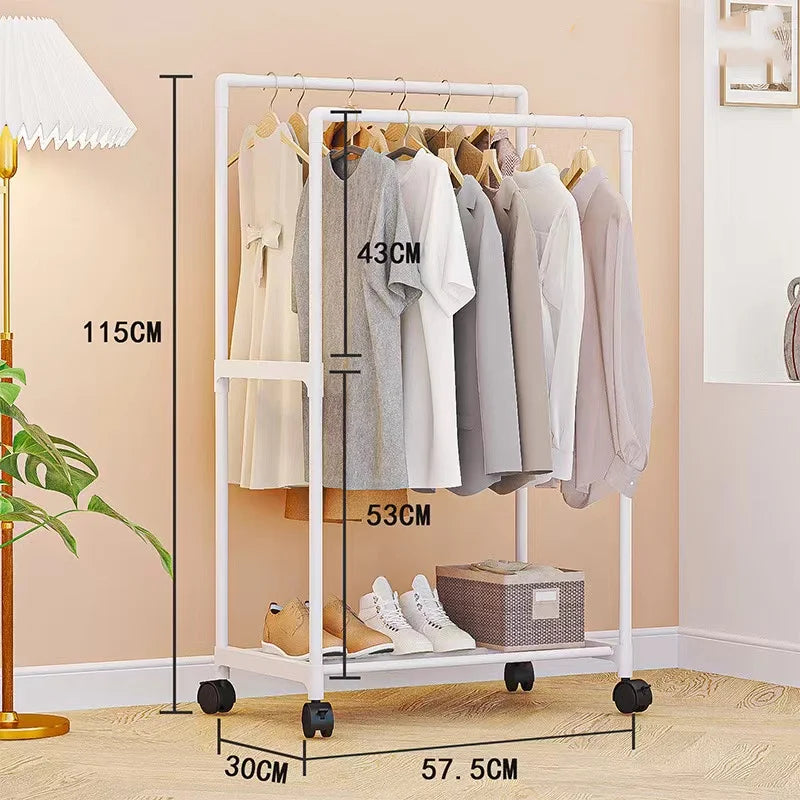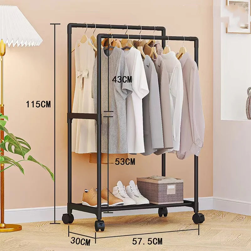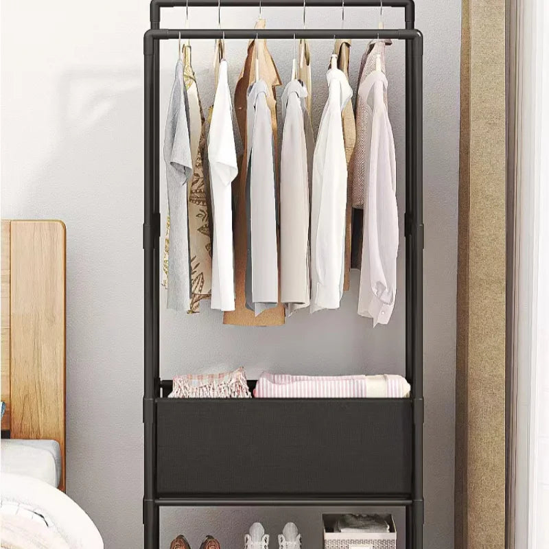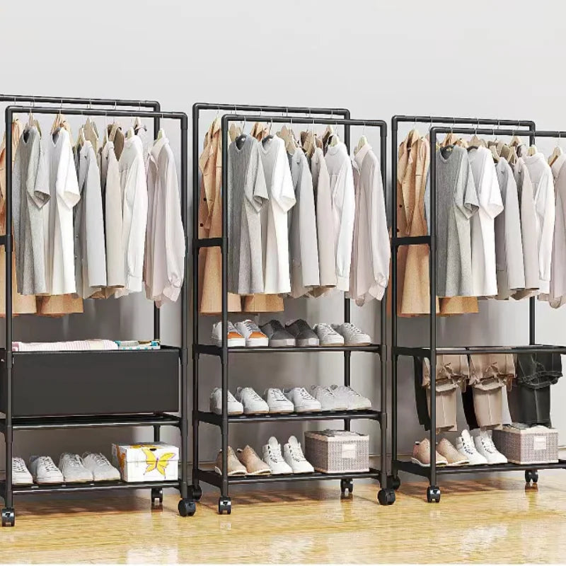 Movable Clothes Storage Rack Floor Hanger Stand Storage Wardrobe with Wheels Activity Hangers Wardrobe Coat Shelves Shoe Racks