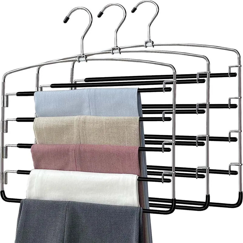 Multi-Layer Stainless Steels Movable Hangers Shelves Organizer Space Saver Closet Hanger Rack Pant Clothes Function Hanger