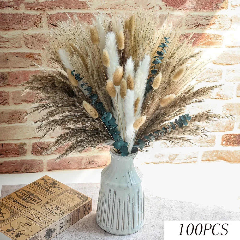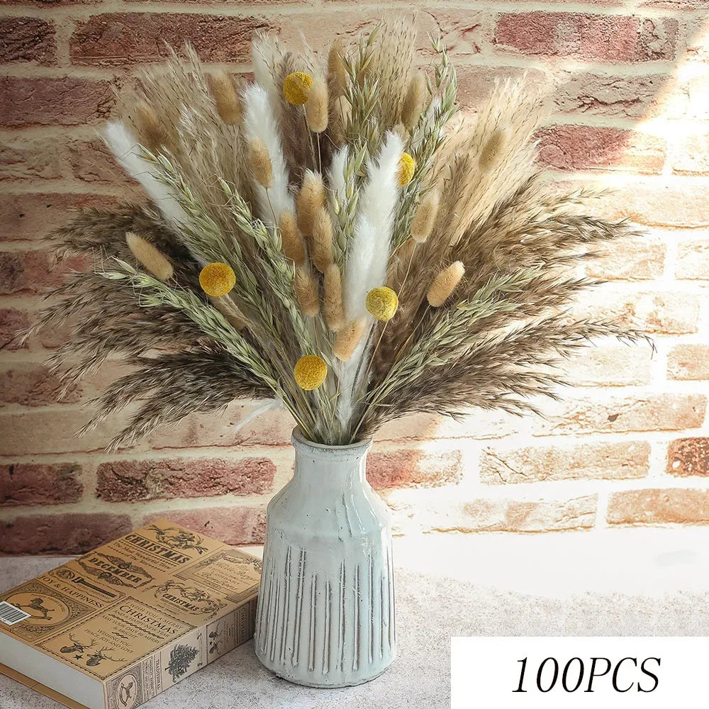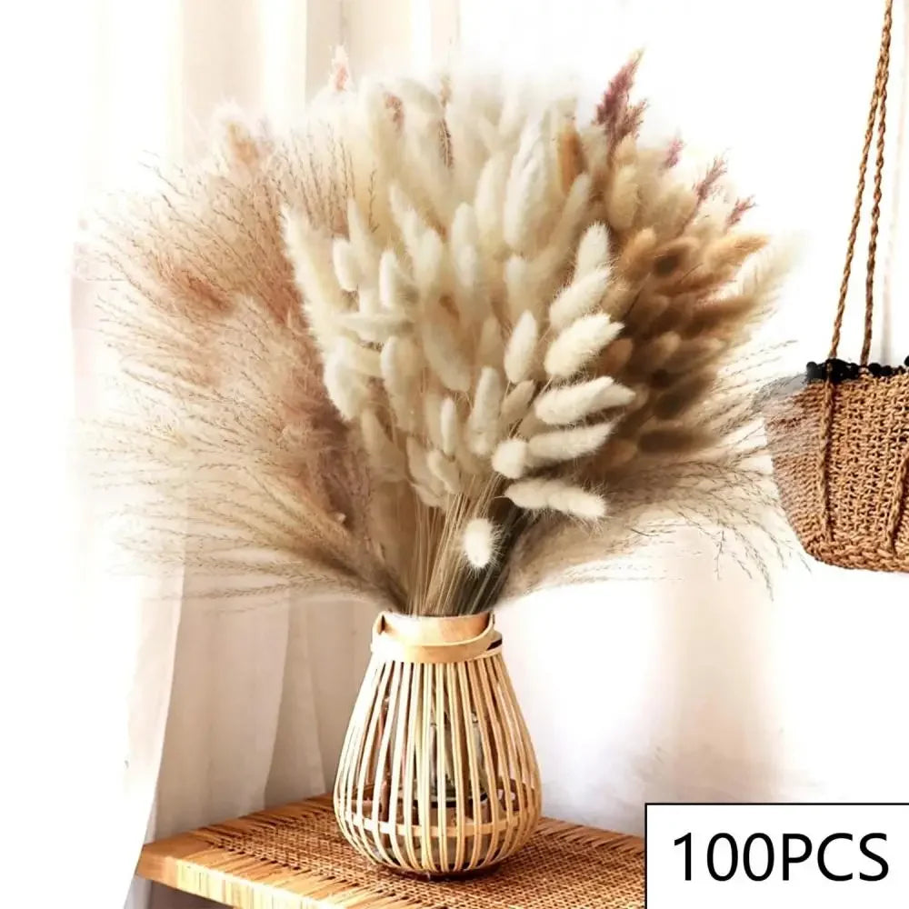 Natural Pampas Decoration 100 Pieces Natural Dried Flowers Rabbit Tail Bouquet for Wedding Table Living Room Vase Boho Home Deco