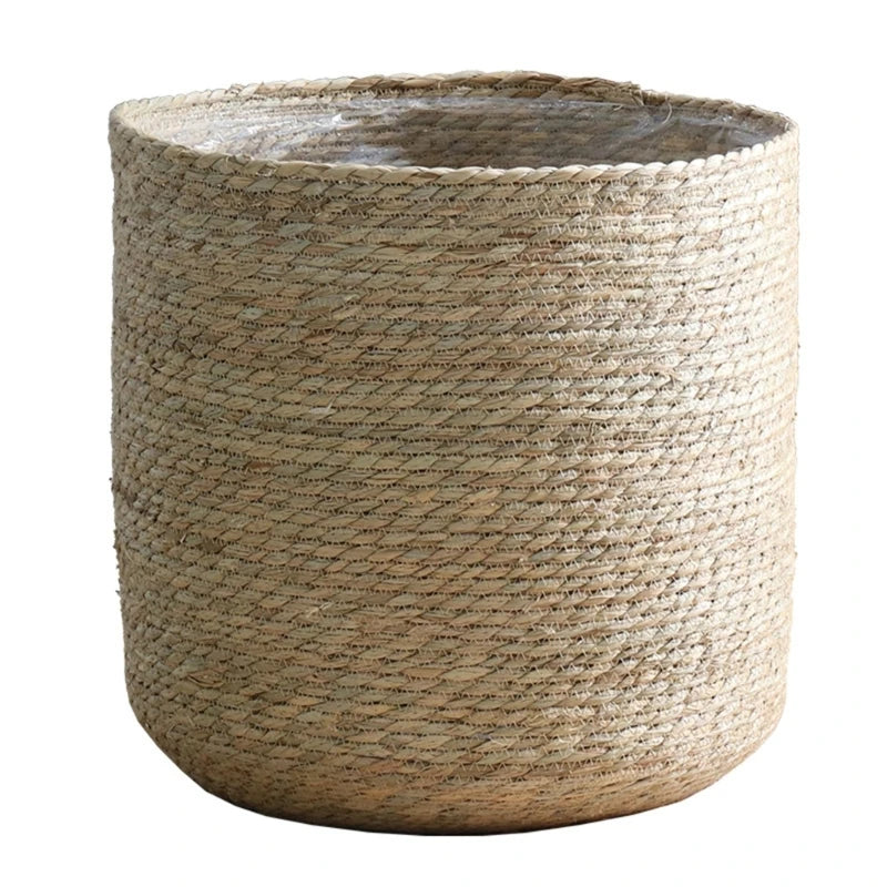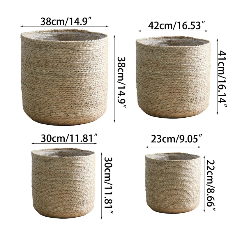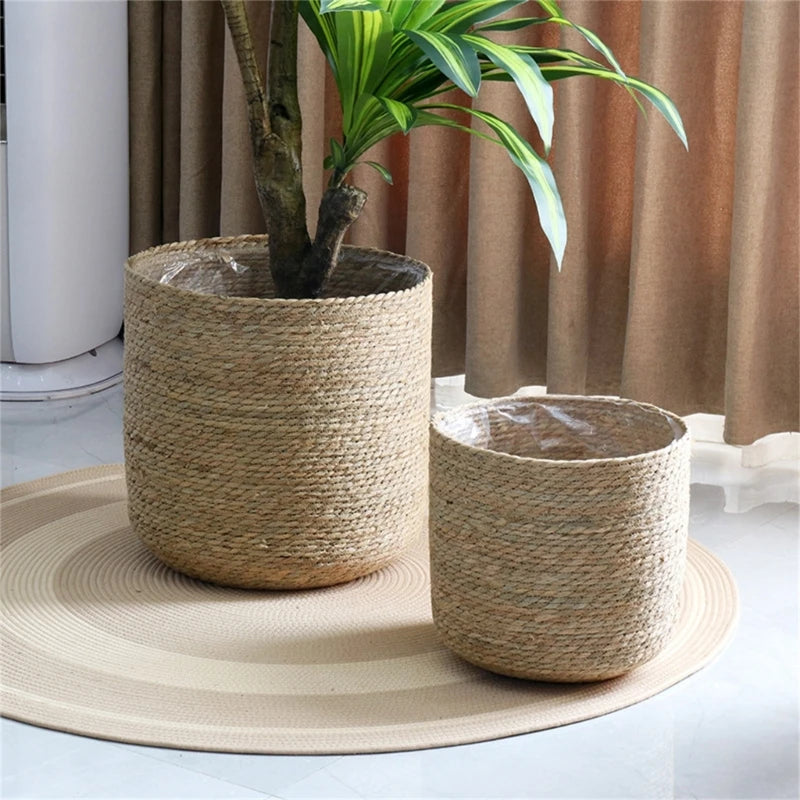 Natural Plant Pots Containers Hand Woven Plant Pot Cover with Leak-Proof Plastic Lining for Indoor Outdoor Garden G5AB