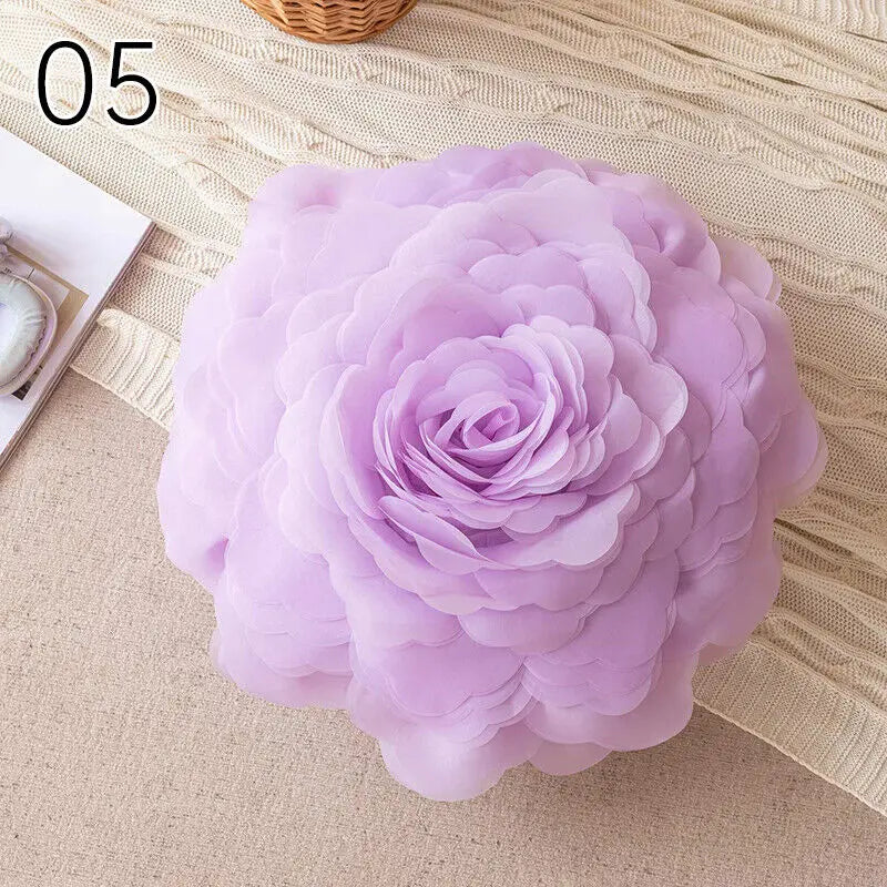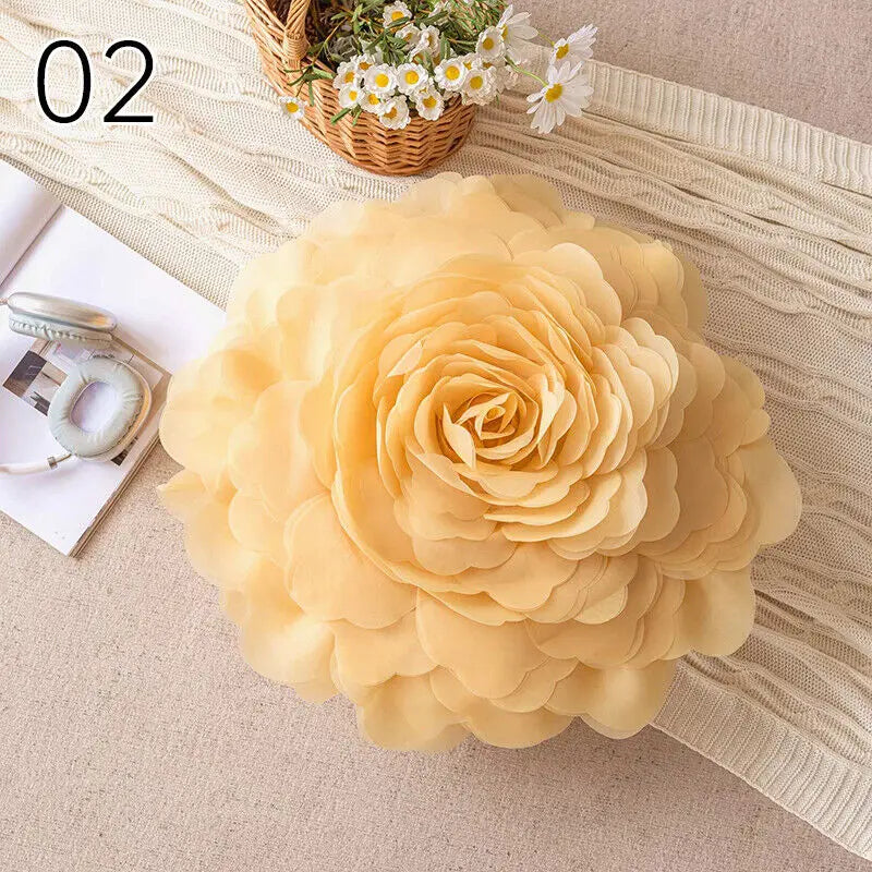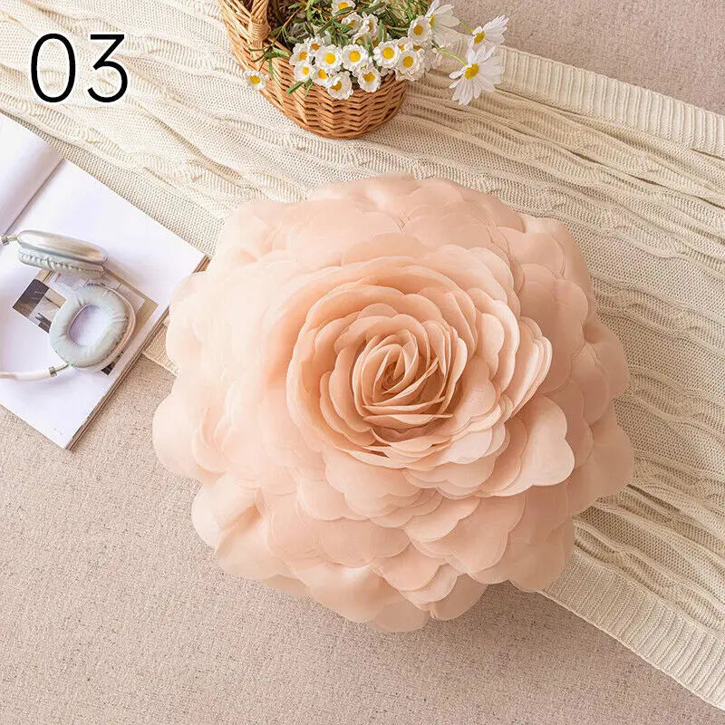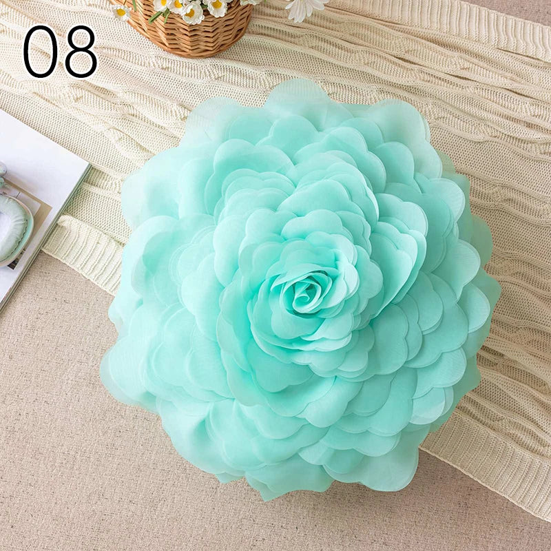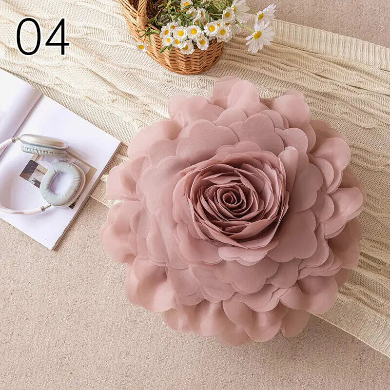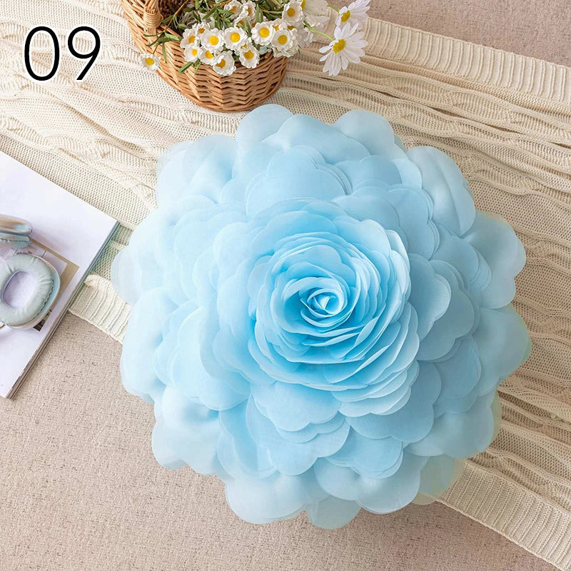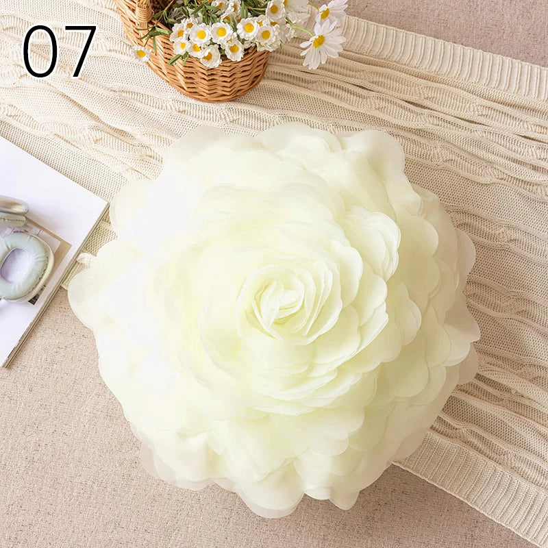 New Flower Rose Tulle 3D Pillow Cover Luxury Handmade Cushion Case Sofa Pillowcase Home Decoration (Without Filling)