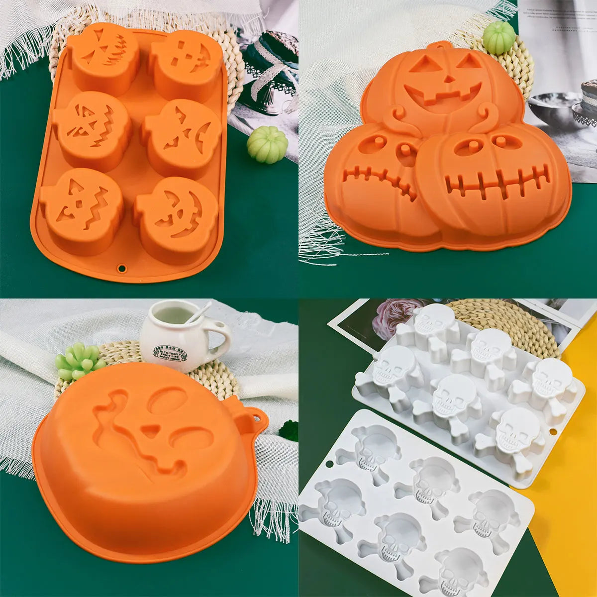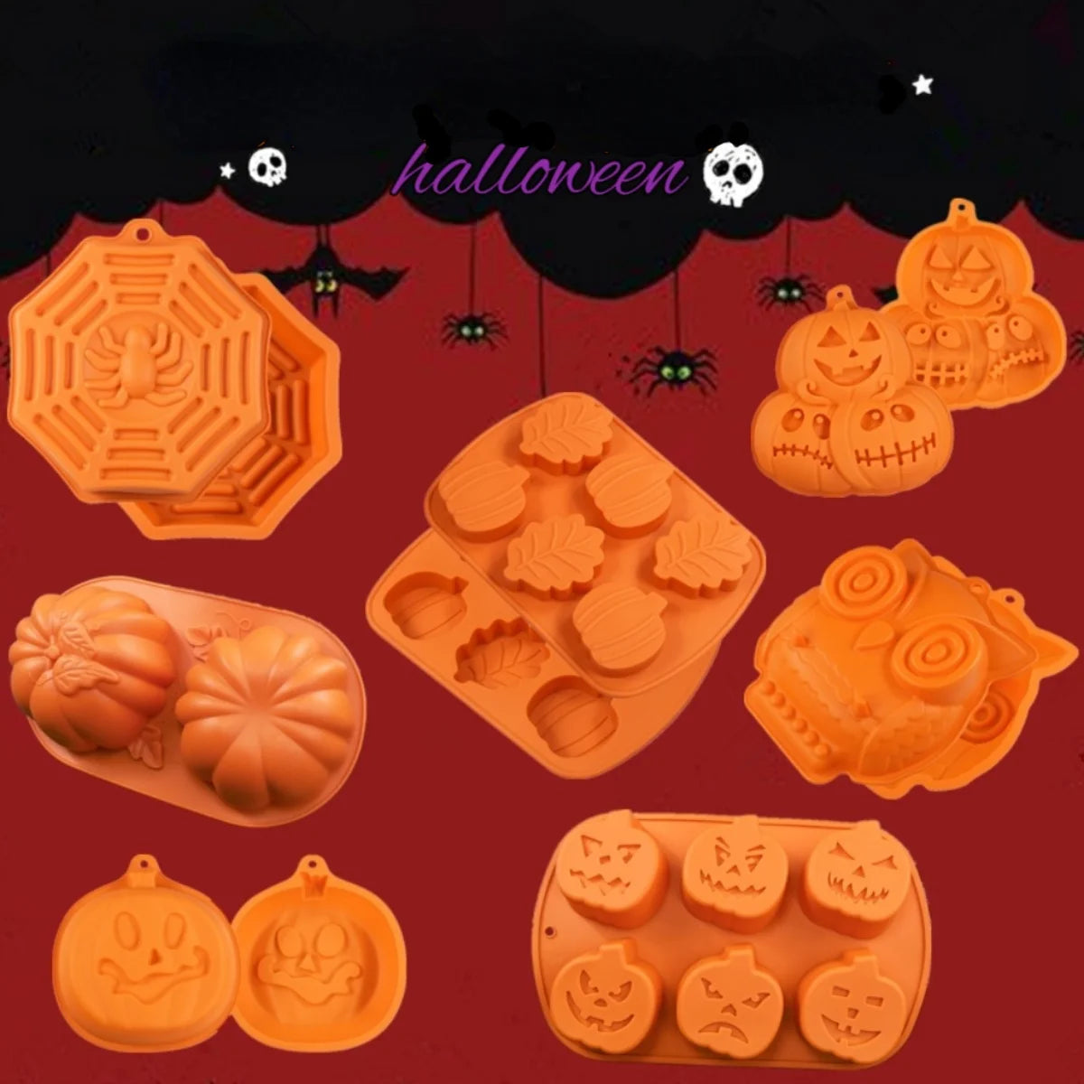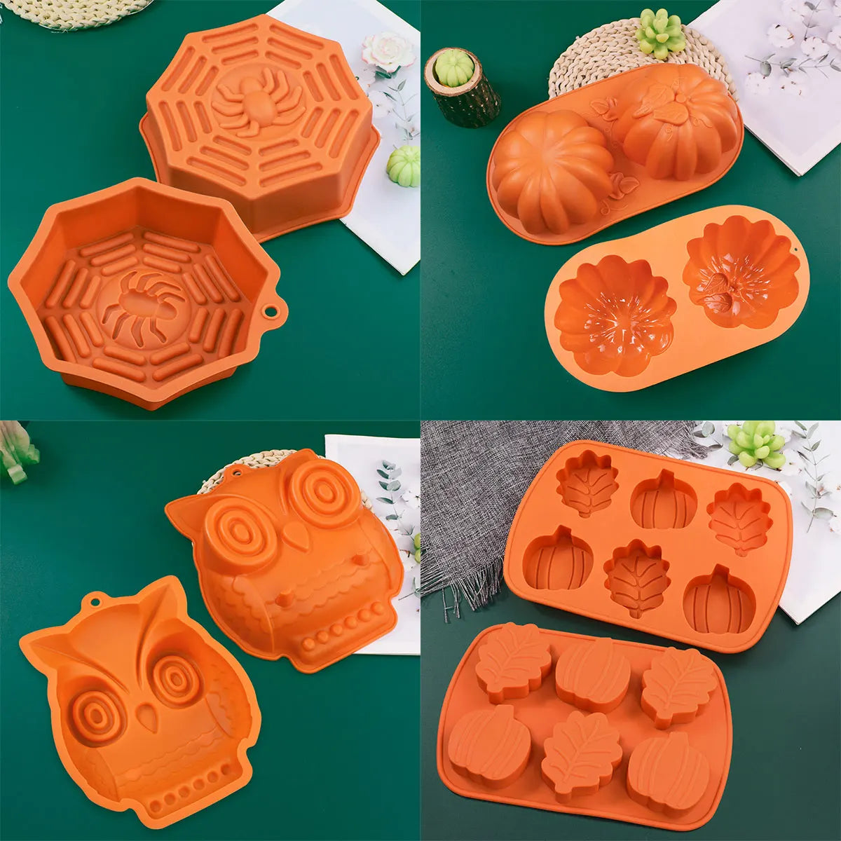 NEW Halloween Pumpkin Silicone Mousse Cake Mold Baking Tray Octagonal Spider Candy Biscuit Jelly Mold Skull Owl Chocolate Making