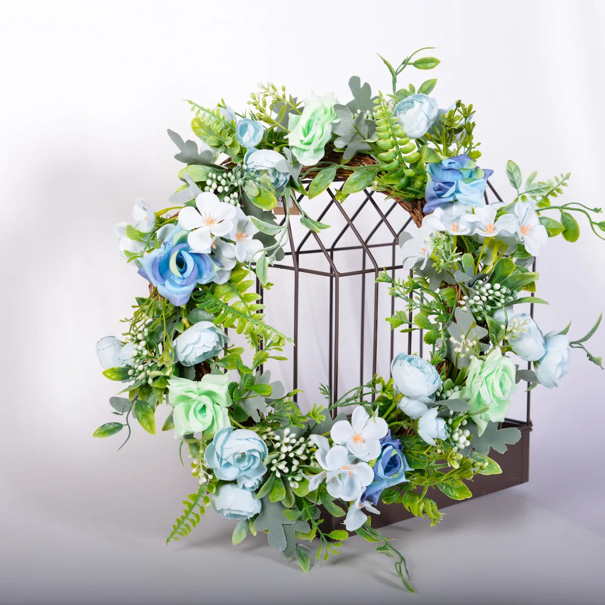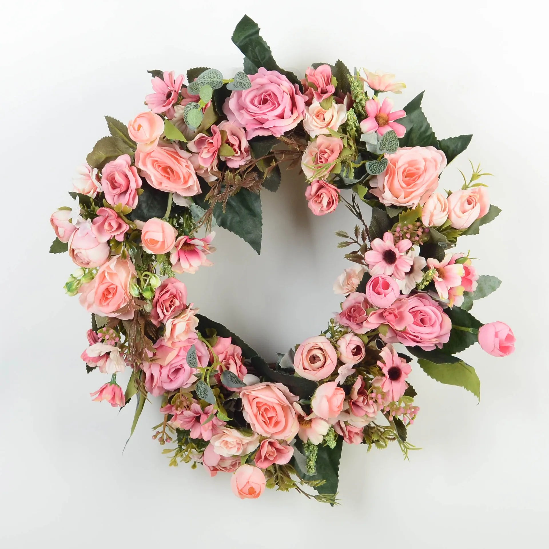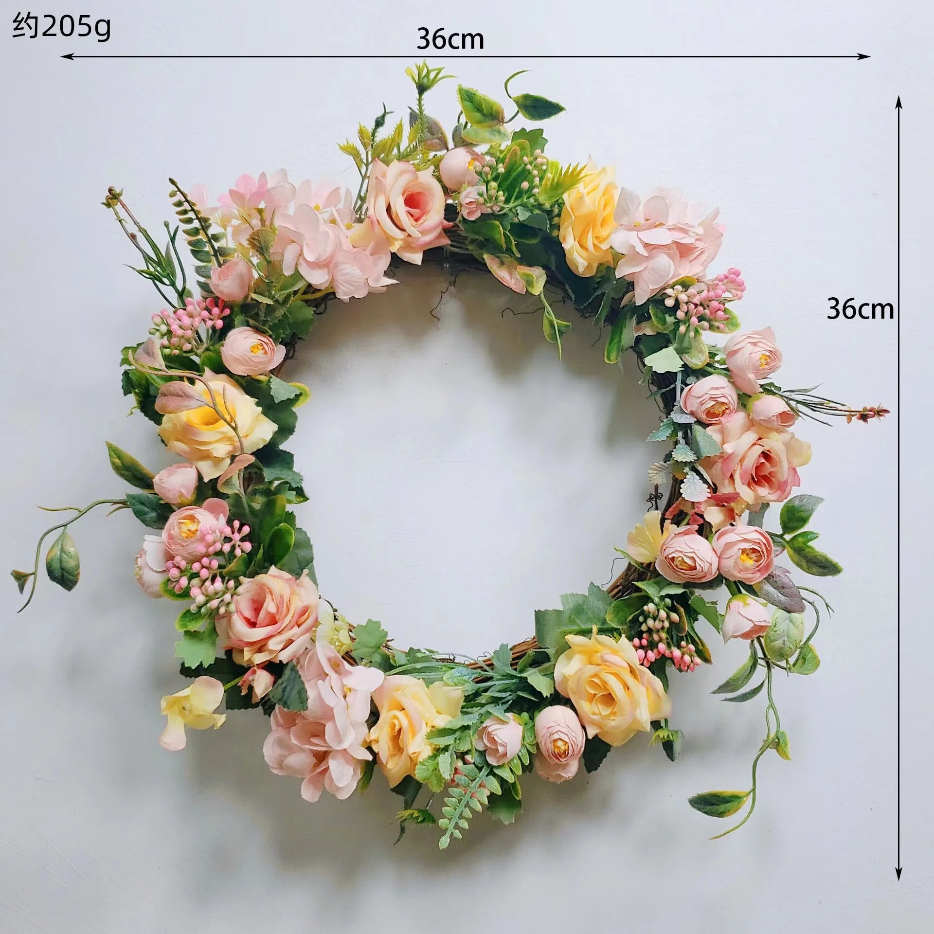 New Product 16Inch Artificial Rose Flower Wreath Window Door Hanging Garland Christmas Wall Ornament Wedding Bridal Wreath Decor