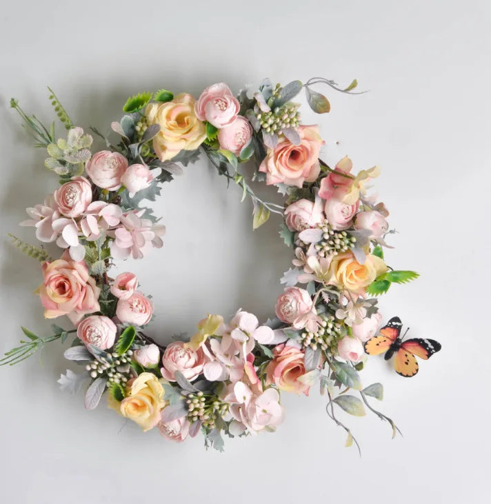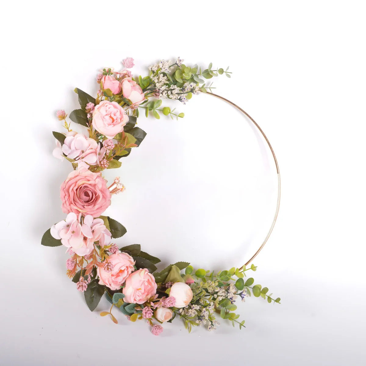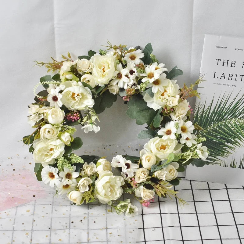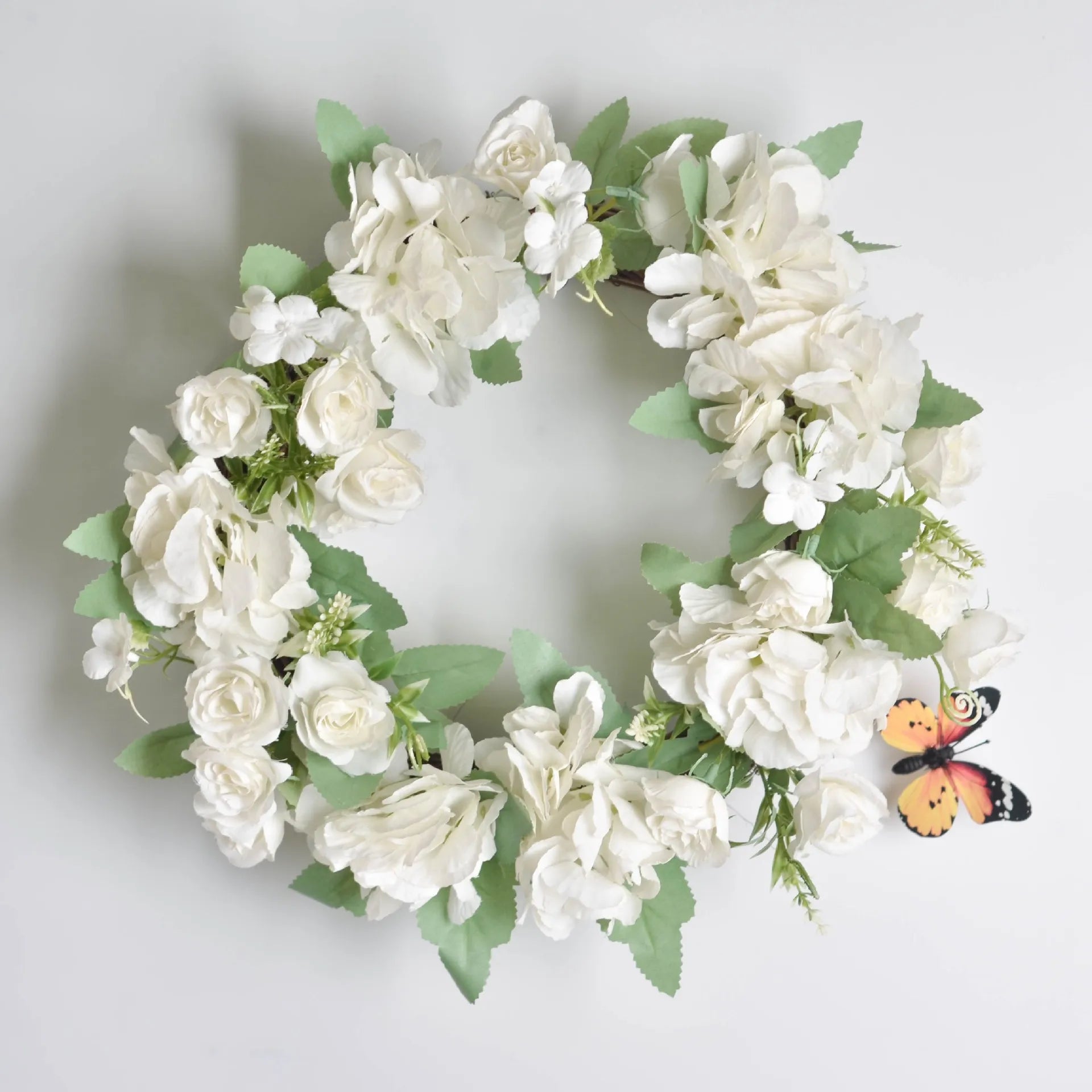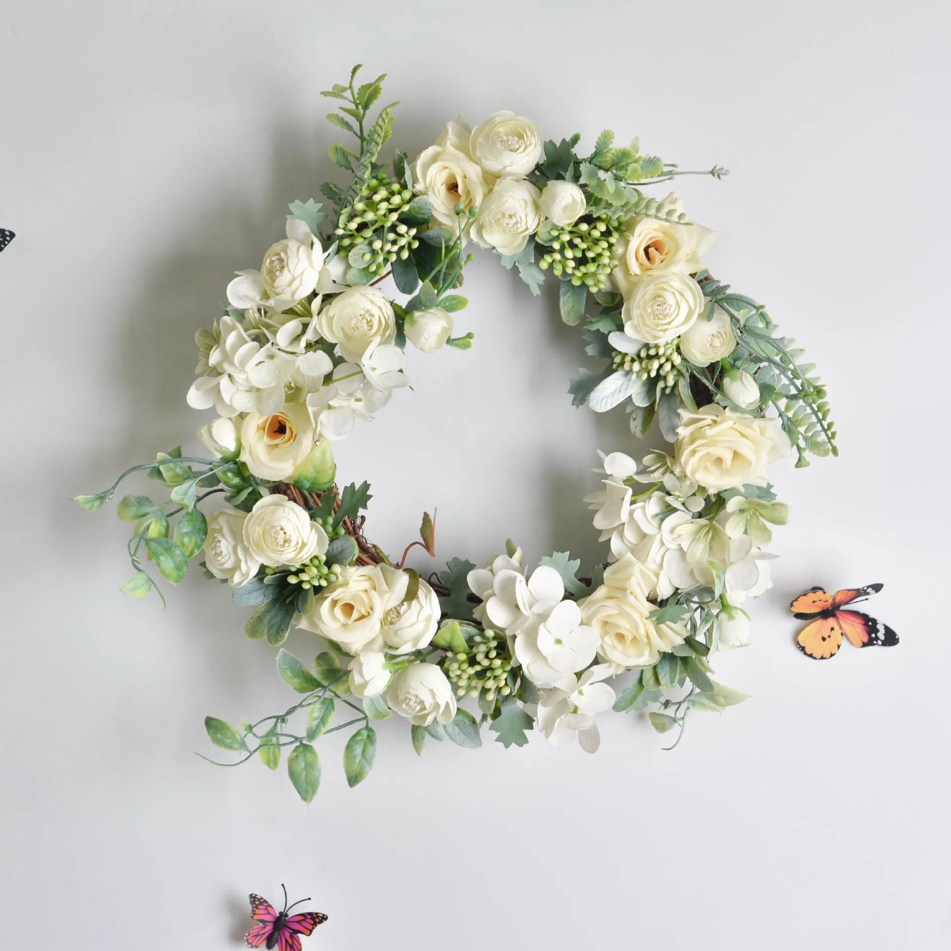 New Product 16Inch Artificial Rose Flower Wreath Window Door Hanging Garland Christmas Wall Ornament Wedding Bridal Wreath Decor