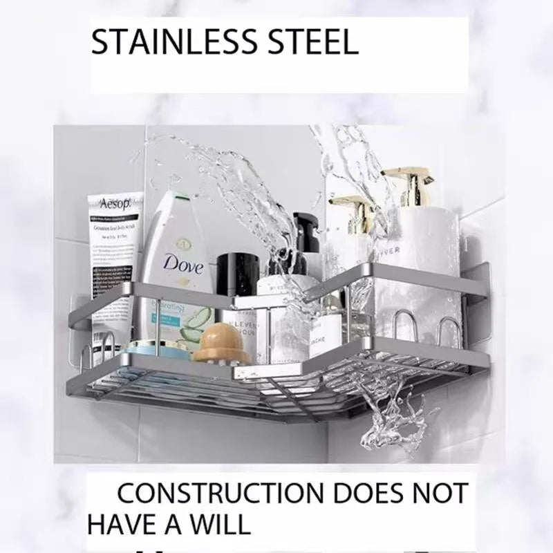 No Drilling Stainless Steel Triangle Double Layer Shelf for Bathroom Balcony Kitchen Corner Storage Space Saving Durable Design