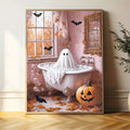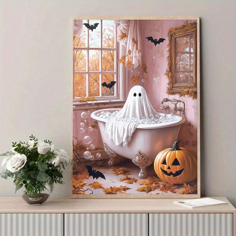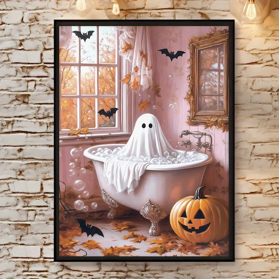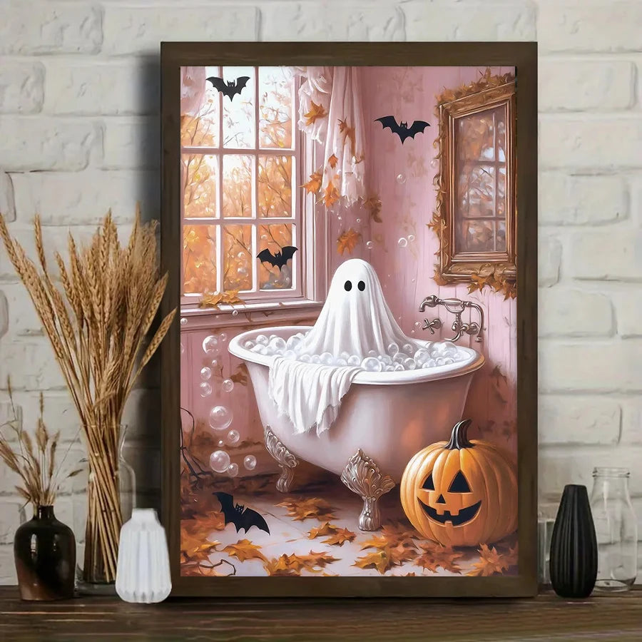 No Framed,Halloween Bathroom Posters, Ghost Spooky Print, Ghost Bathing Print, Halloween Wall Art, Spooky Poster, Wall arts Deco