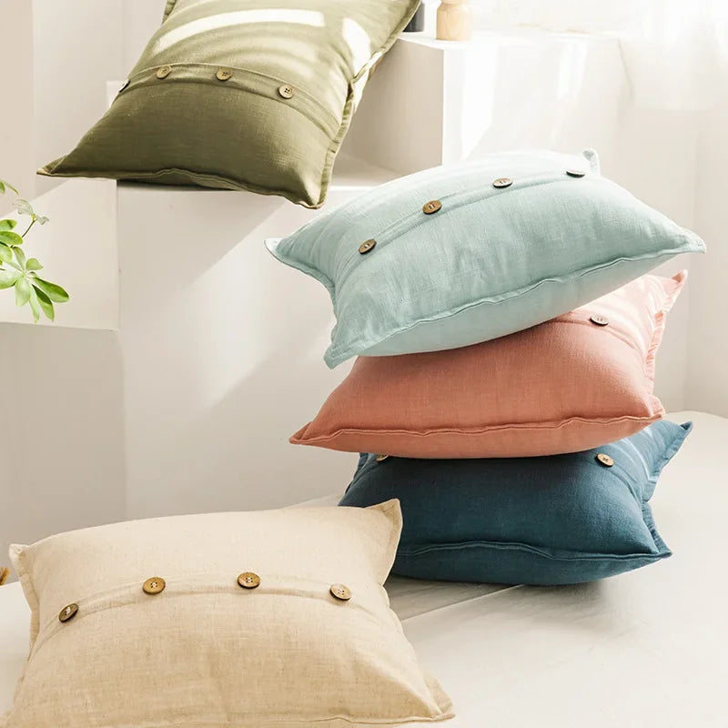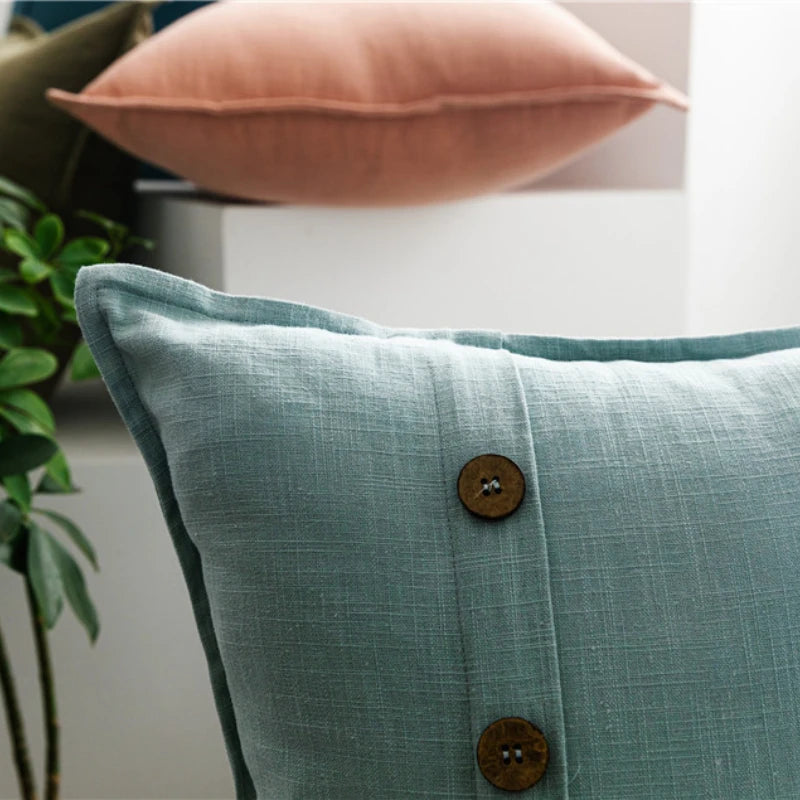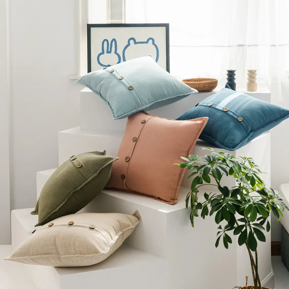 Nordic Cotton Linen Cushion Cover Luxury Sofa Solid Plain Coconut Button Pink Pillowcases Throw Pillow Cover Home Decore 45x45cm