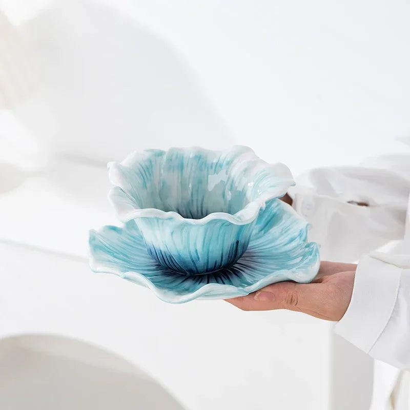 Nordic Flower Shape Mug Set Ceramic Cup Couple Afternoon Tea Coffee Cup Saucer Set Creative Home Office Tea Cup Drinkware