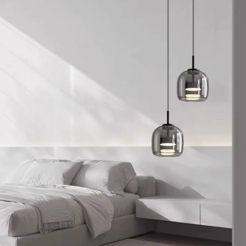 Nordic glass LED chandelier creative simple light luxury restaurant bedside cafe bar shop bar single head glass chandelier