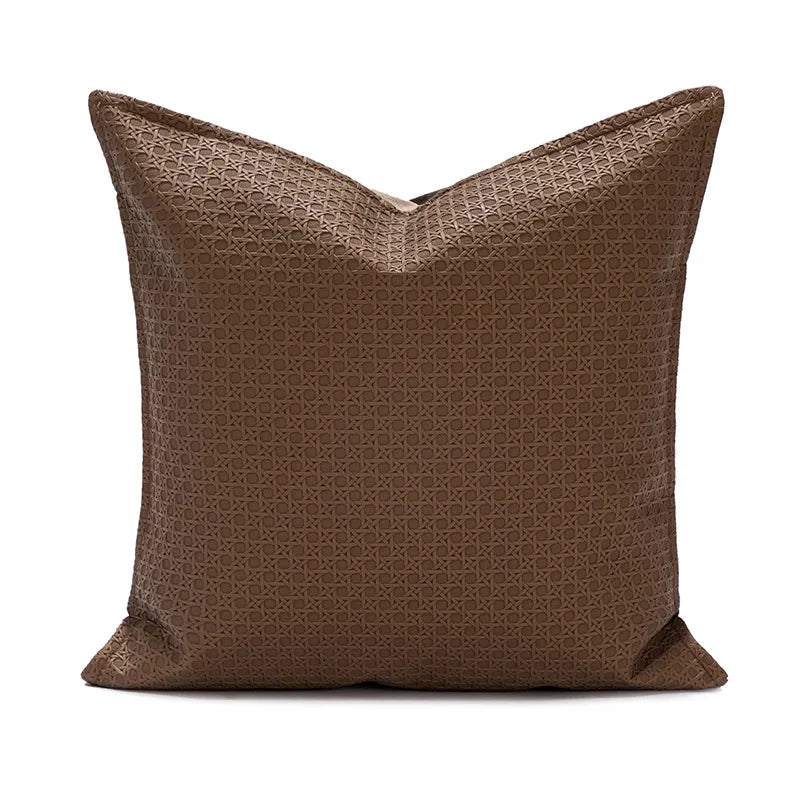 Nordic Leather Cushion Cover Solid Cream Brown Plaid Throw Pillow Cover 45x45 PU Decoration Sofa Living Room Summer Home Decor