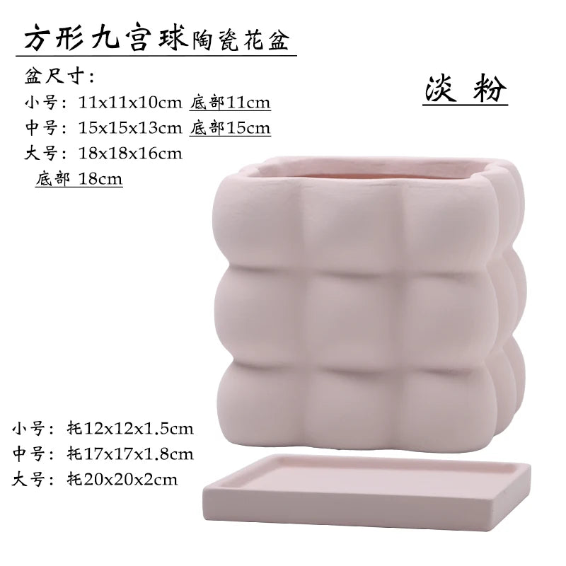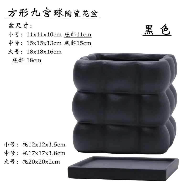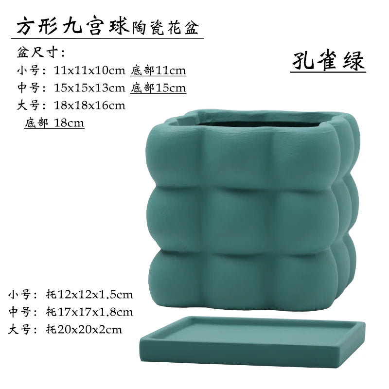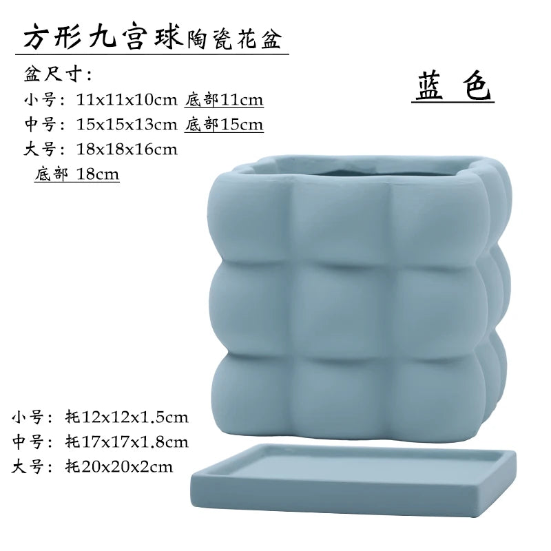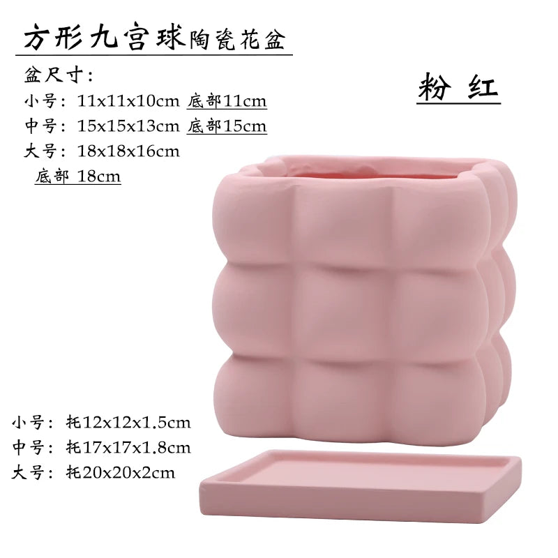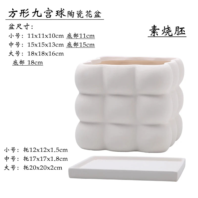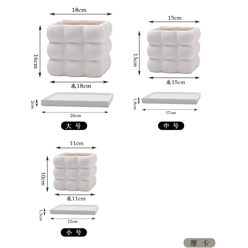 Nordic Nine Square Checkered Ball Square Ceramic Flower Pot Perforated with Tray Plant Potted Flower Vase Indoor Garden Decor