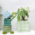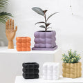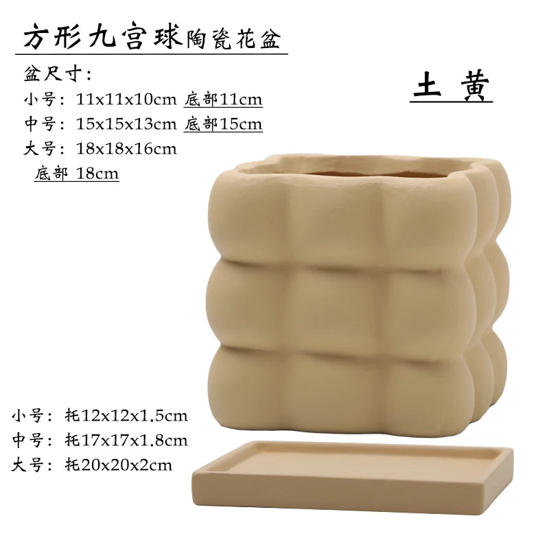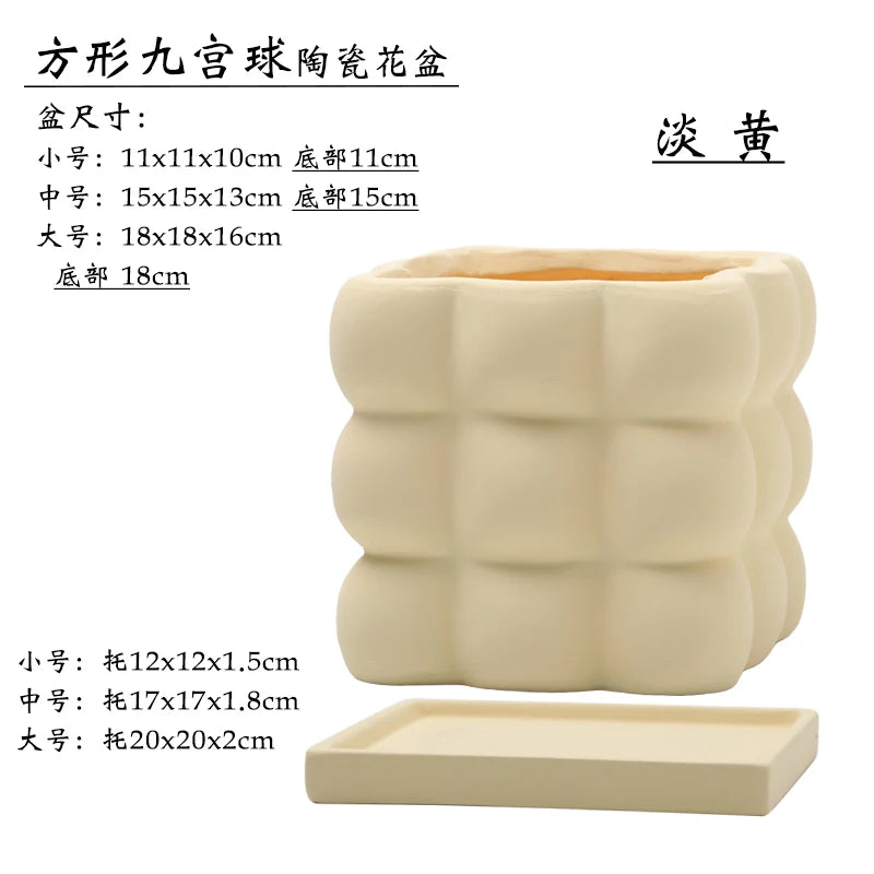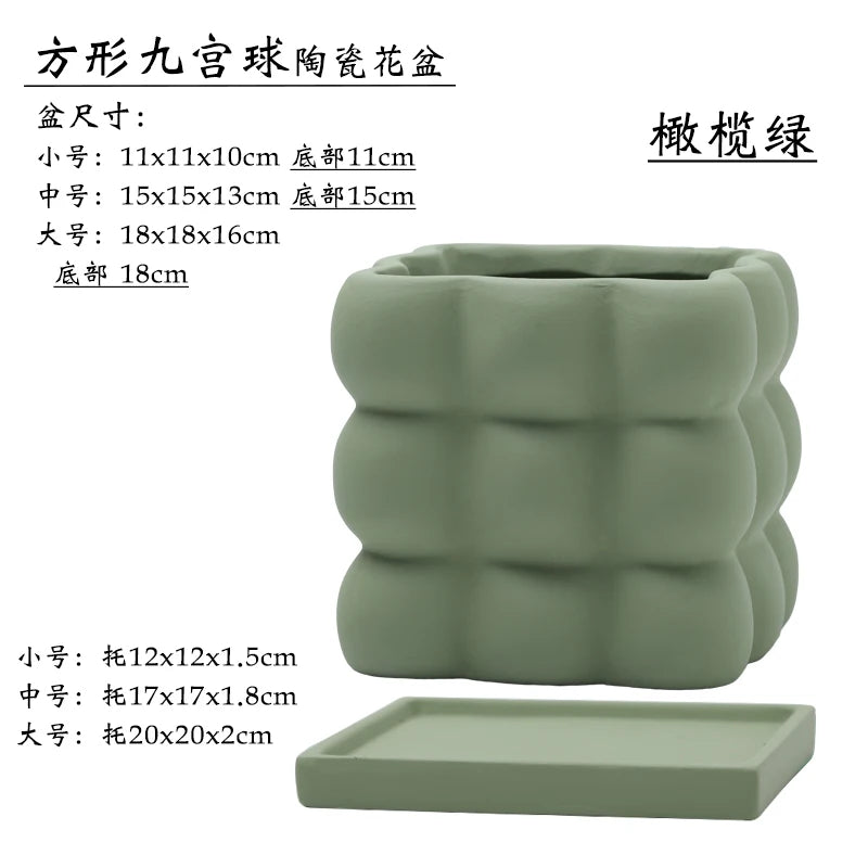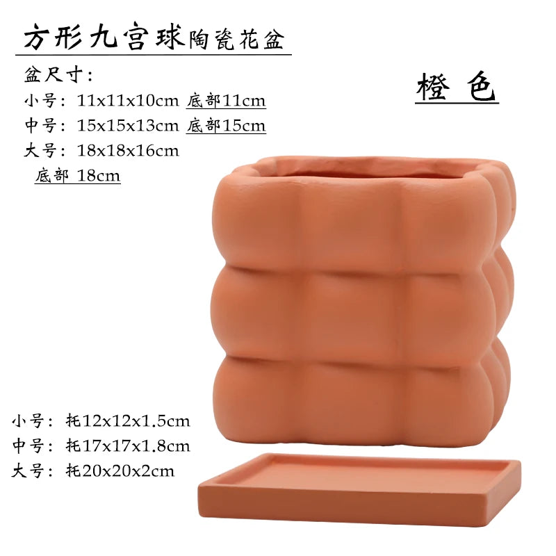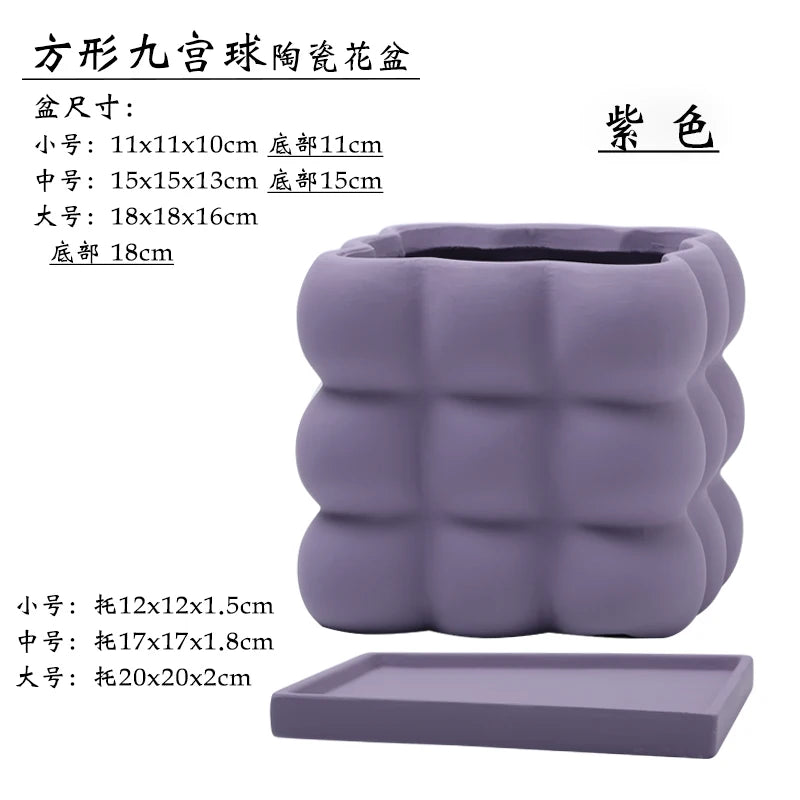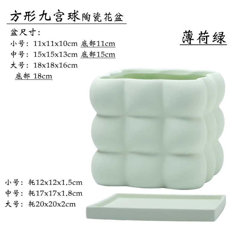 Nordic Nine Square Checkered Ball Square Ceramic Flower Pot Perforated with Tray Plant Potted Flower Vase Indoor Garden Decor