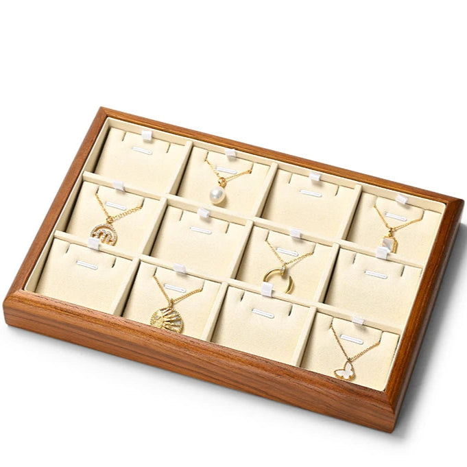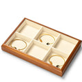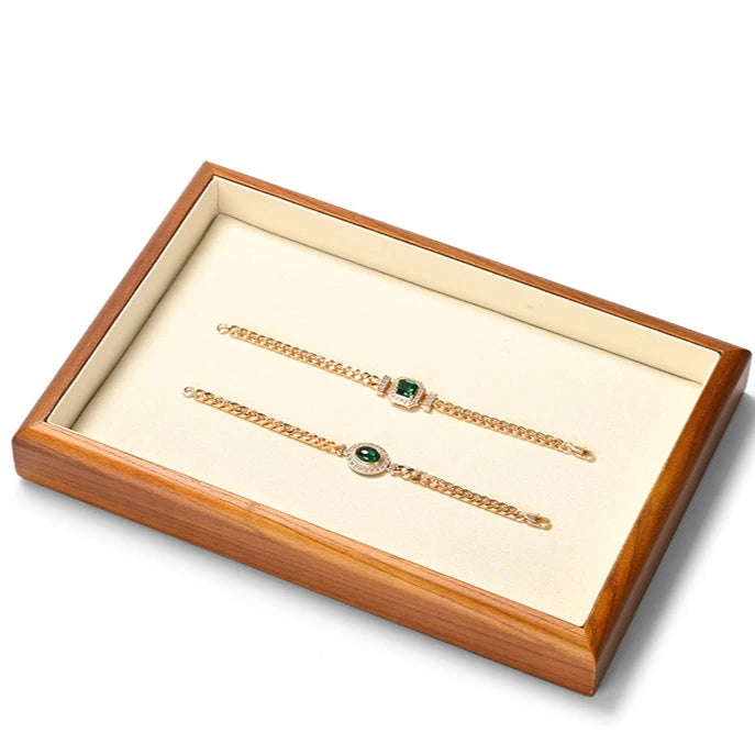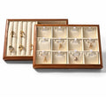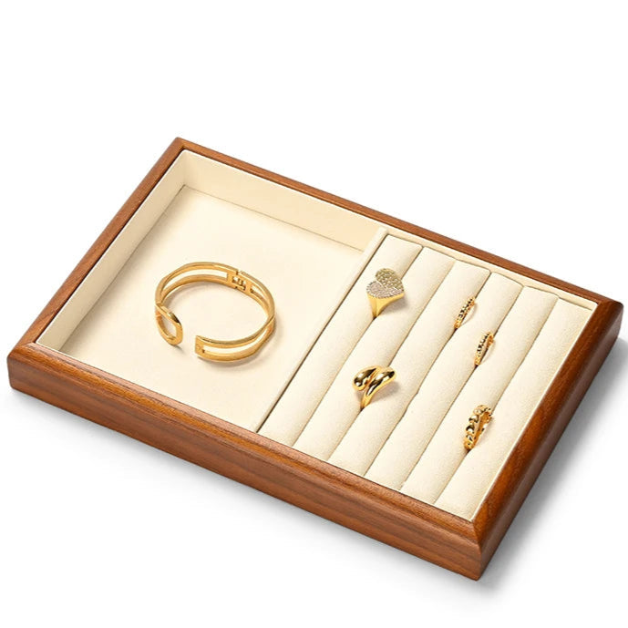 Keep your jewelry beautifully organized with this stackable wooden display tray. Its minimalist rectangular design and soft compartments protect and showcase your collection in style. Perfect for rings, earrings, bracelets, watches, and necklaces.