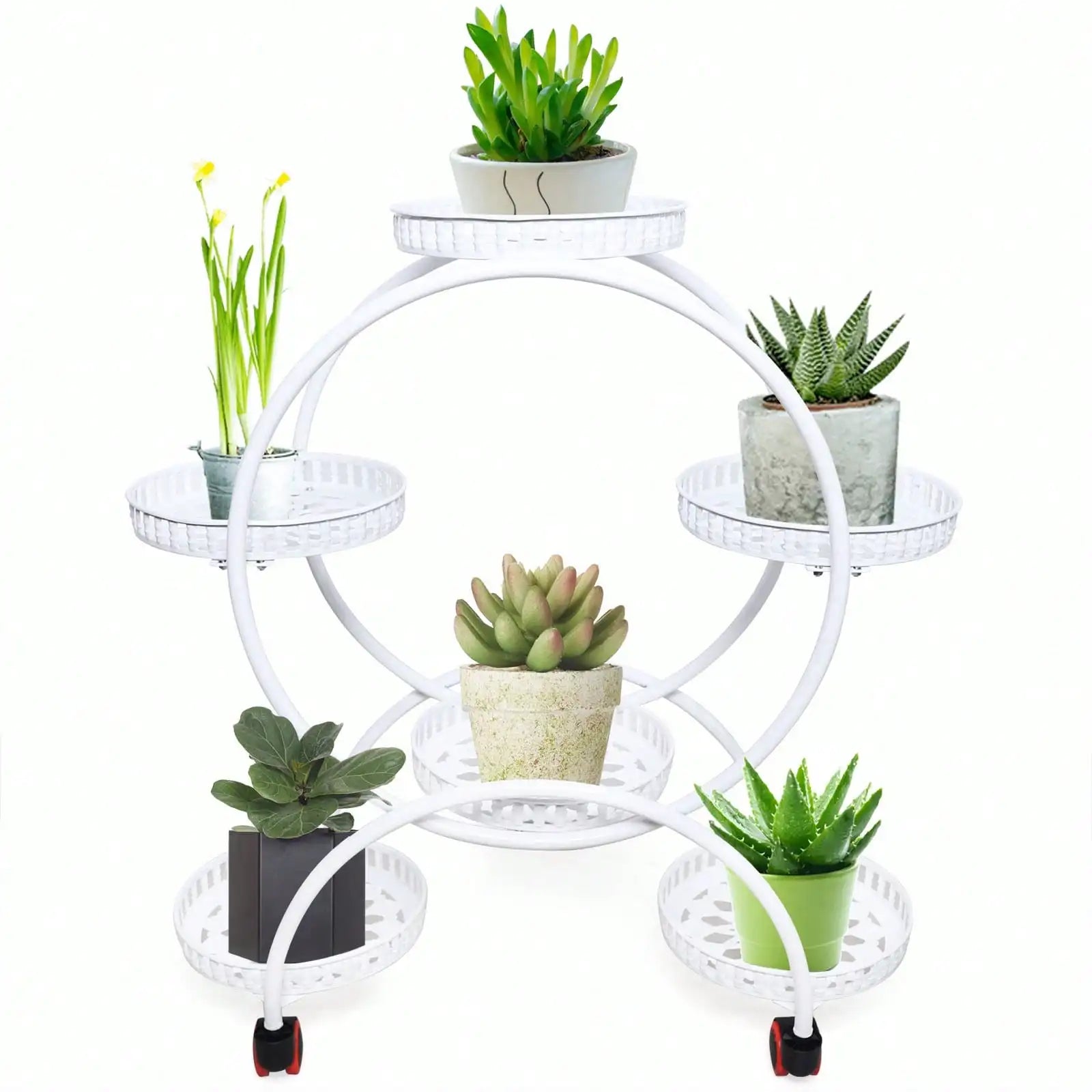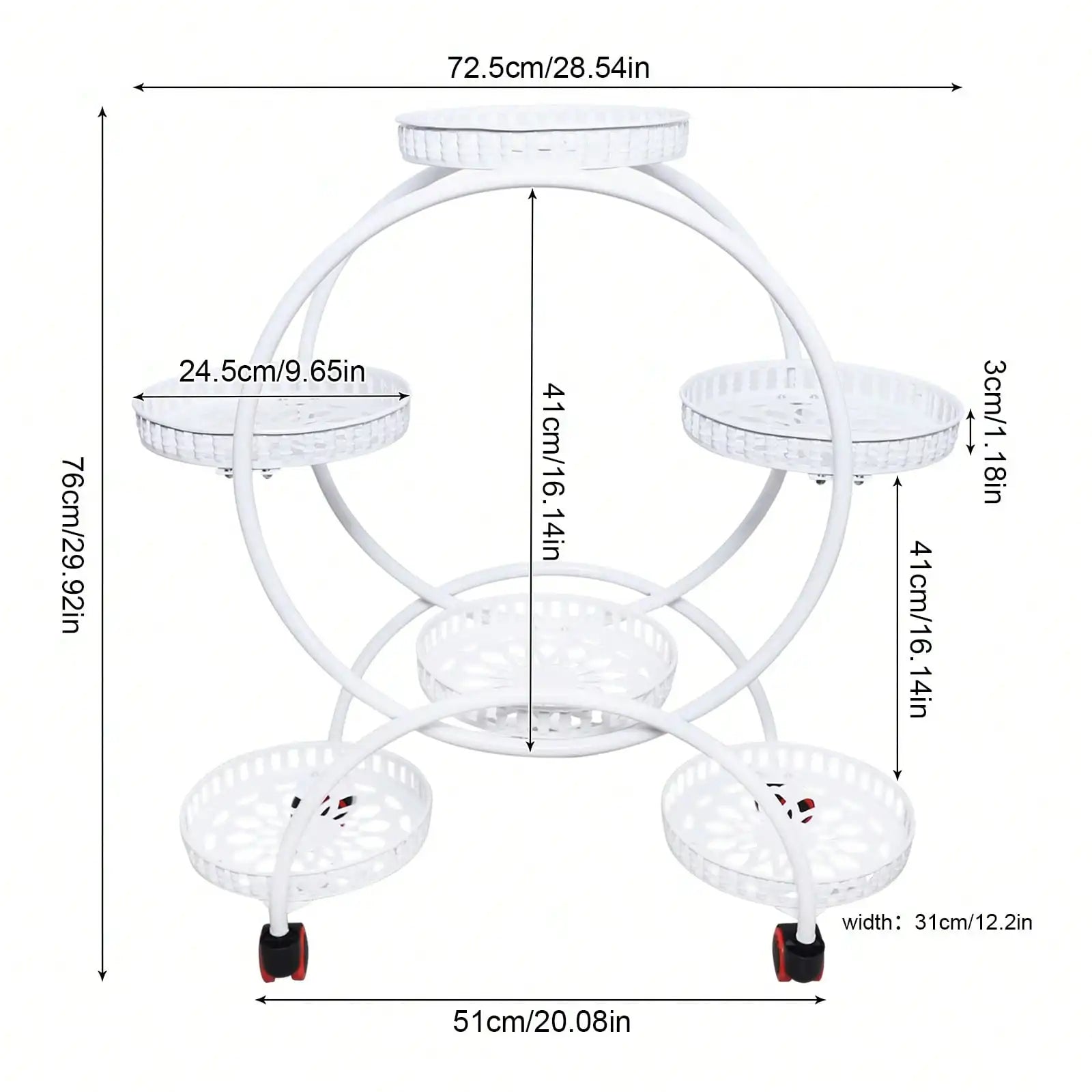 Pot Plant Shelf Round Metal Stand W/Wheel Rack for Flowers Balcony Garden