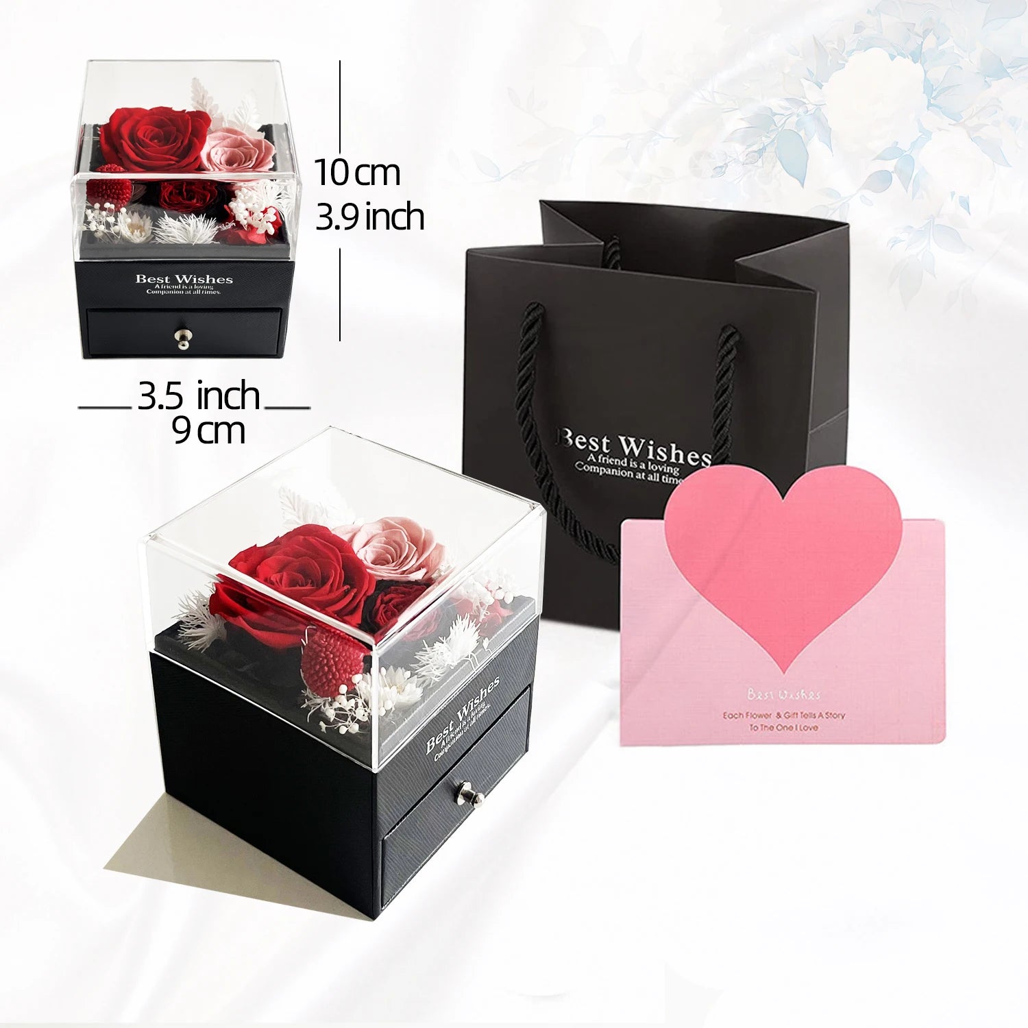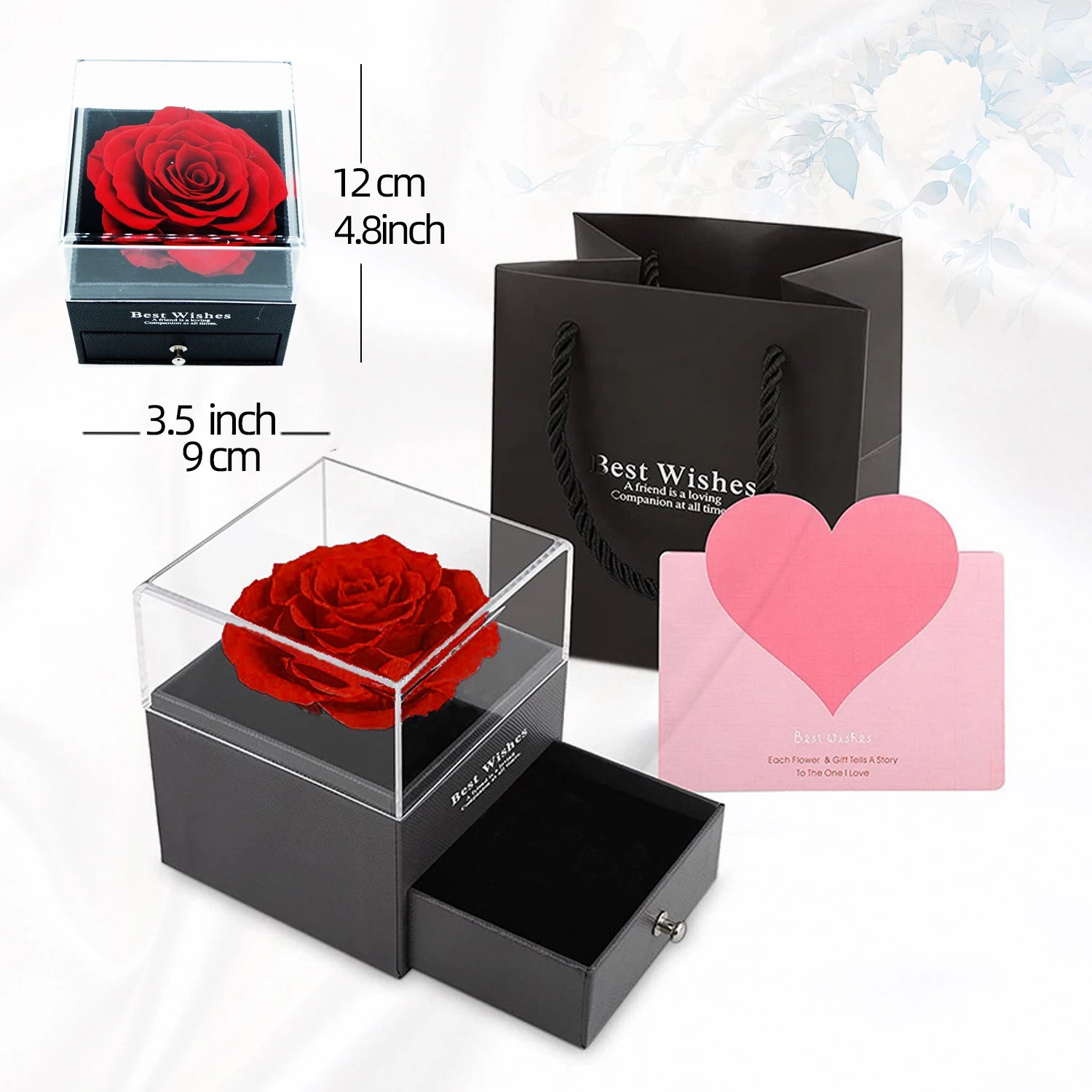 Preserved Roses Forever Decorative Dried Natural Flowers Bouquet Romantic Surprise Gift Jewelry Box for Women Anniversary