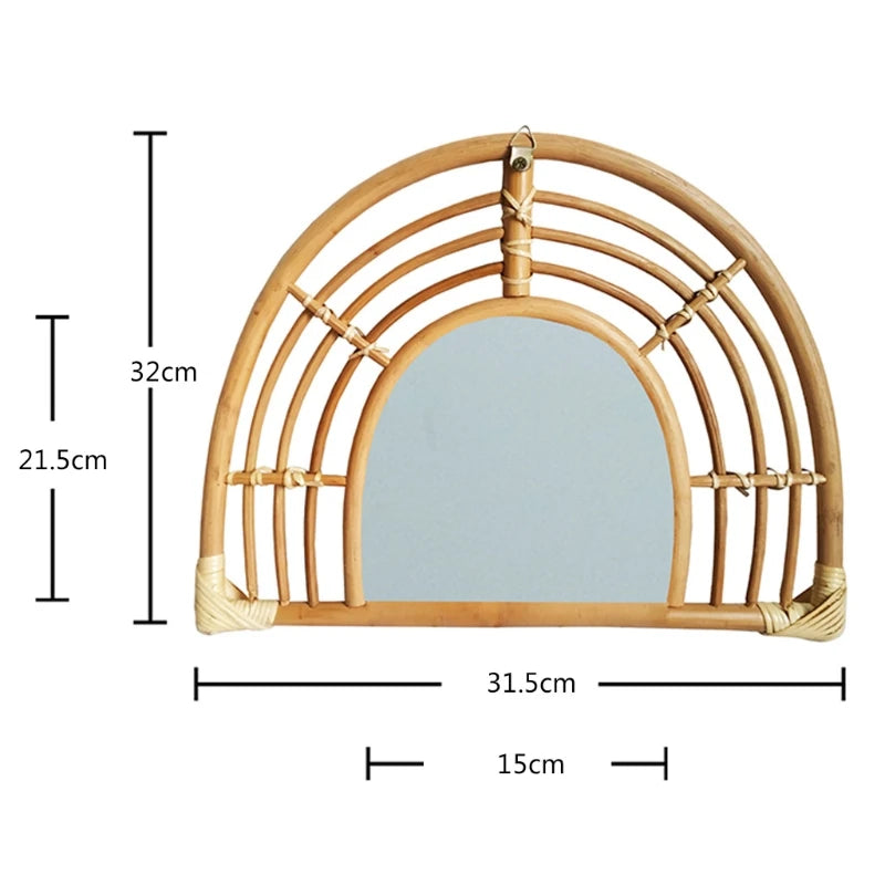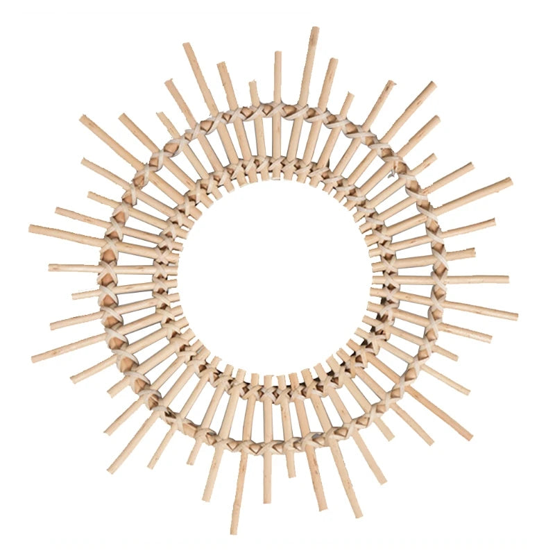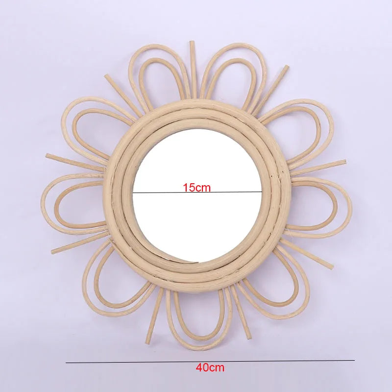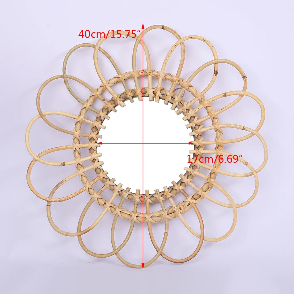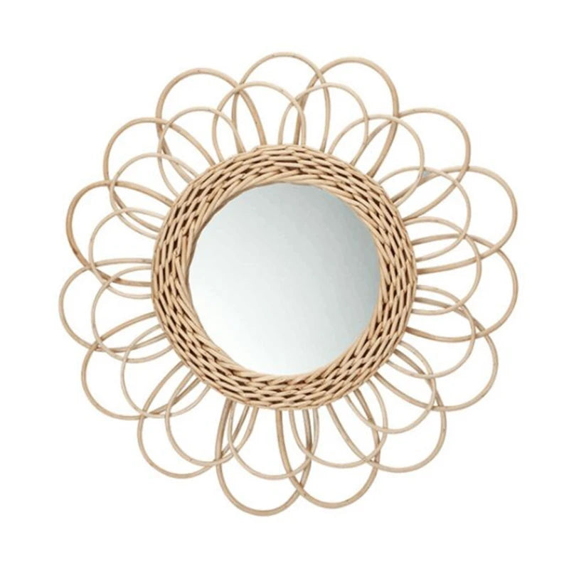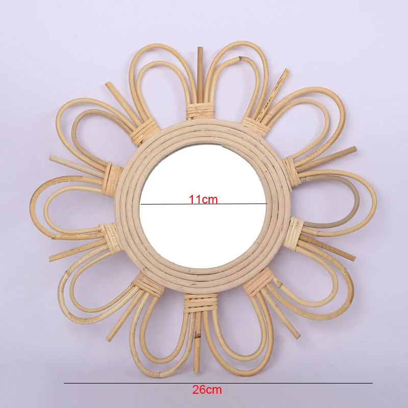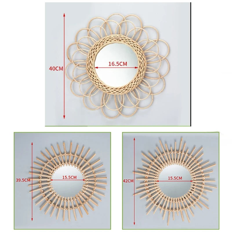 Rattan Innovative Art Decoration Round Makeup Mirror Dressing Bedroom Bathroom Wall Hanging Mirrors Craft Photo Props