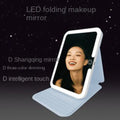 Rechargeable Tri-light LED Makeup Mirror with Leather Case Square Folding Portable Travel Vanity Light Cosmetic Mirror
