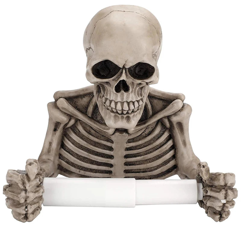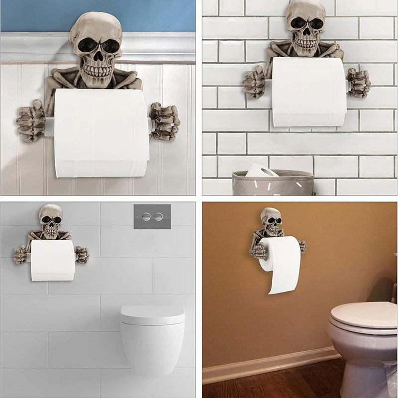 Resin Skull Toilet Paper Holder Wall Mount Tissue Roll Paper Storage Holder Skeleton Shelf Rack Bathroom Halloween Decor