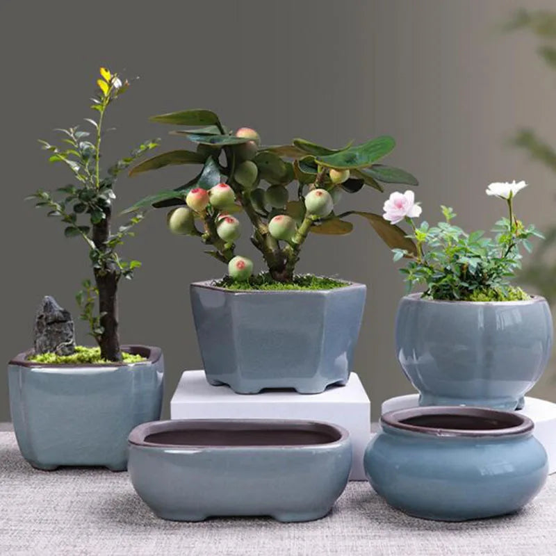 Retro Ceramic Flower Pot Asparagus Succulent Plant Pot Breathable Vase Bonsai Container Home Garden Balcony Decor