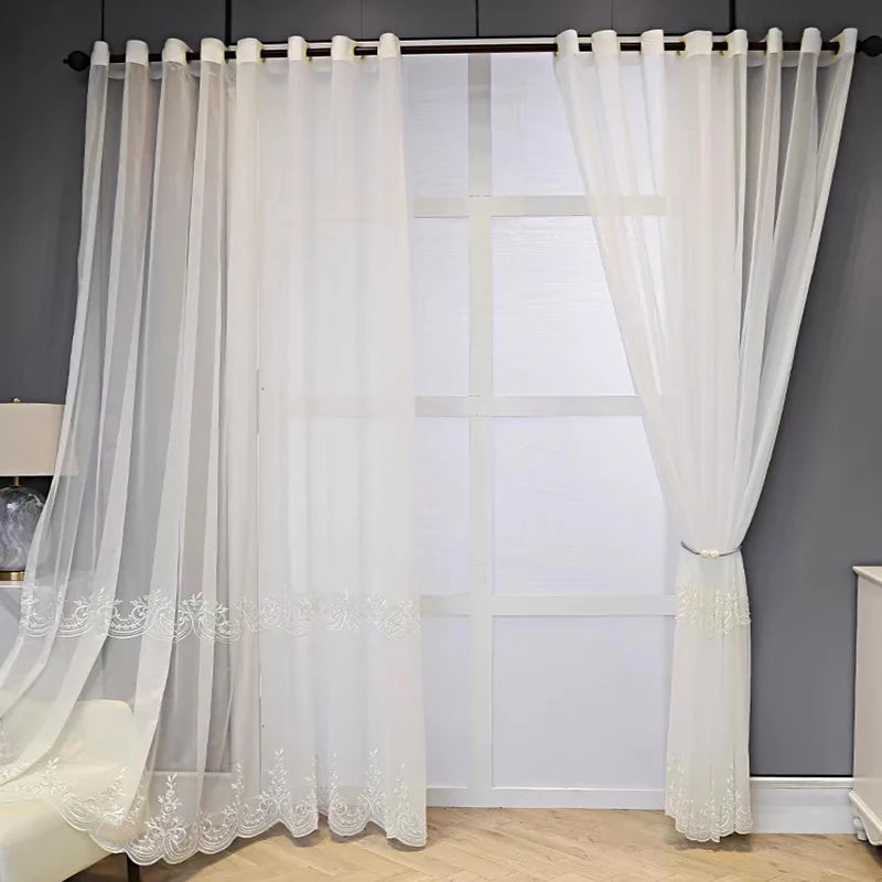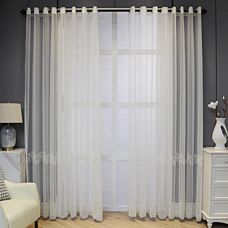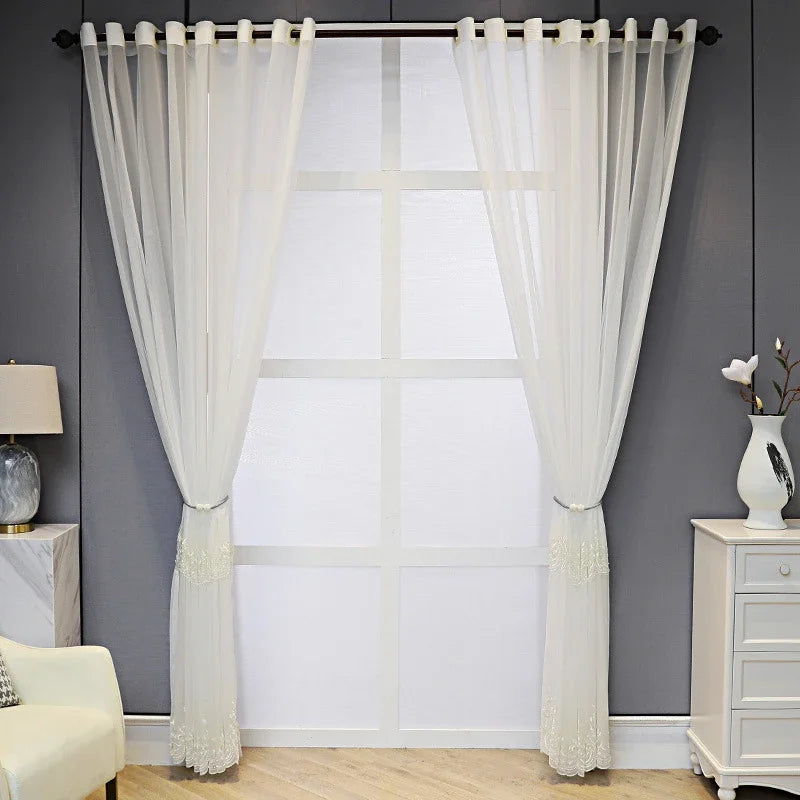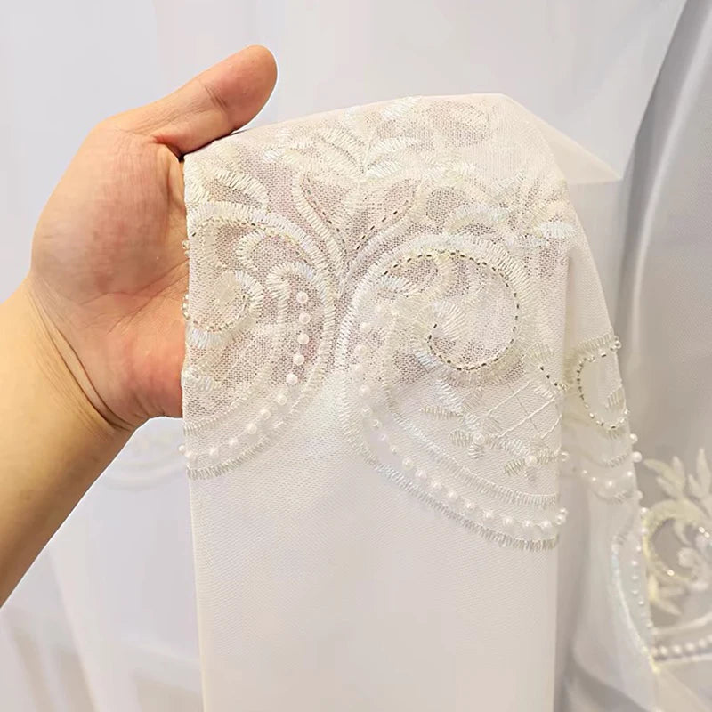 Romantic And Luxurious White Window Screen, Pearl Embroidery Gauze Curtain For Living Room Bedroom Balcony Translucent Curtain