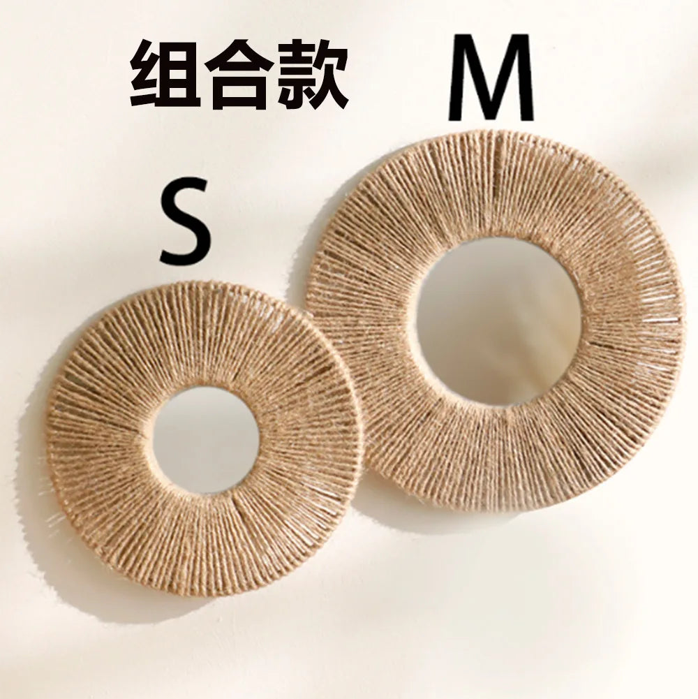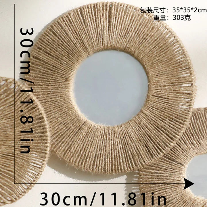 Round Decorative Wall Mirrors Farmhouse Circle Mirror with Hemp Rope Boho Mirrors for Bedroom, Bathroom, Living Room Decor Gift