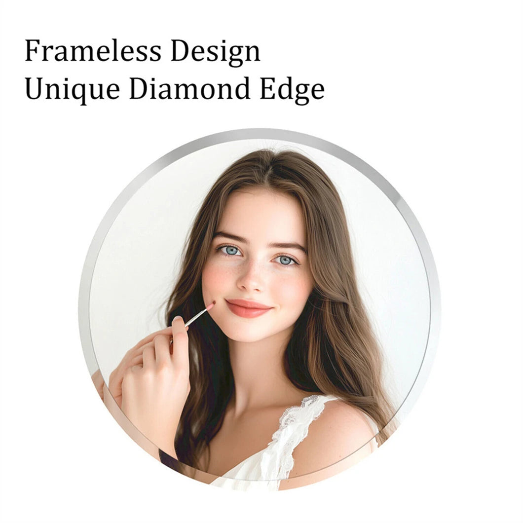 Round Wall Mirror Decor Mirror Frameless Vanity Mirror with Beveled Silver Edge for Bathroom Bedroom Livingroom Entry