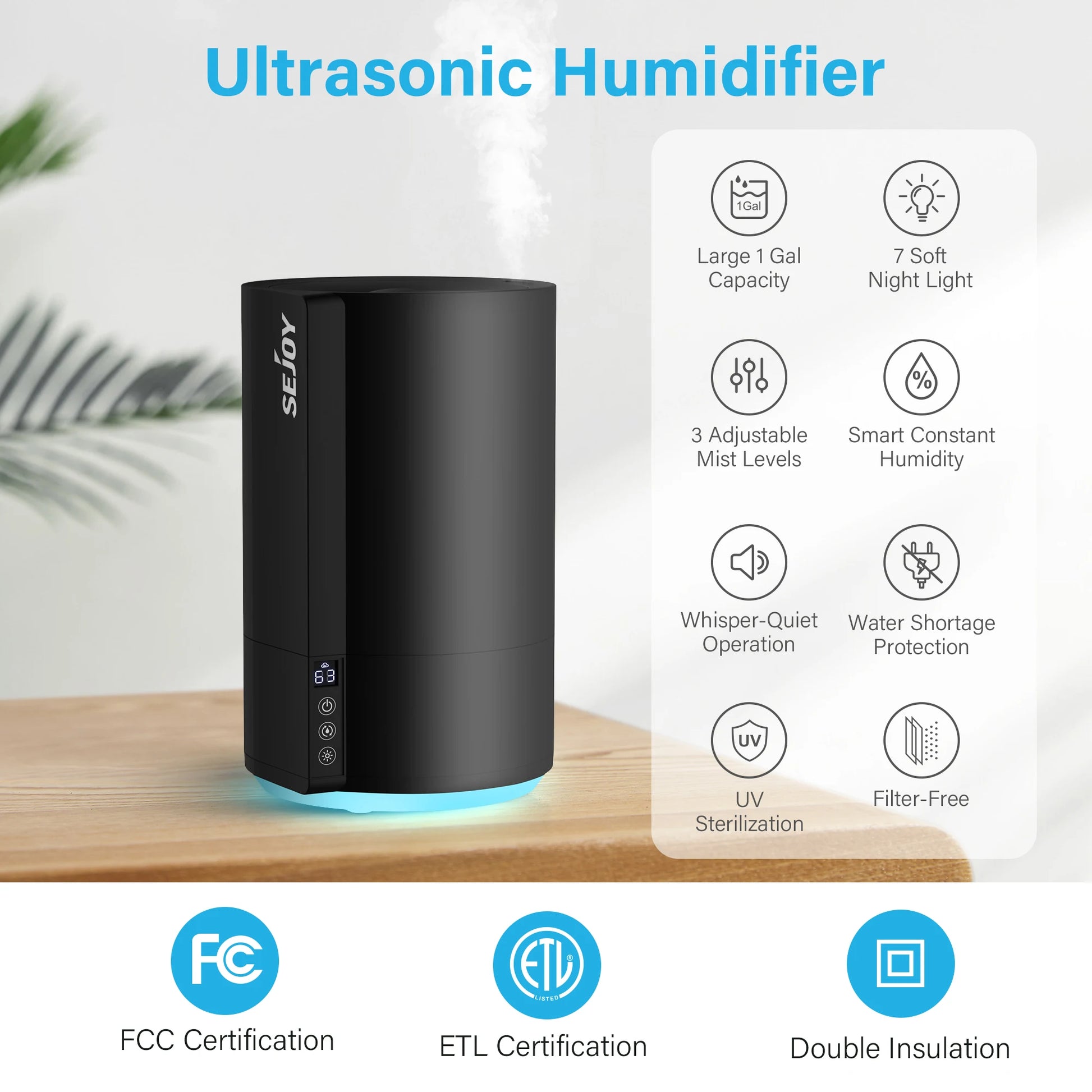 Sejoy Air Humidifier 4L Large Capacity Home Humidifier Plant Mist Aroma Diffuser,with Control Timer,3 Adjustabel Mist,7 Colors