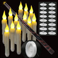 Set of 12/24 Hanging Floating Candles with Magic Wand LED Flickering Candles Flameless Battery Operated for Halloween Xmas Party