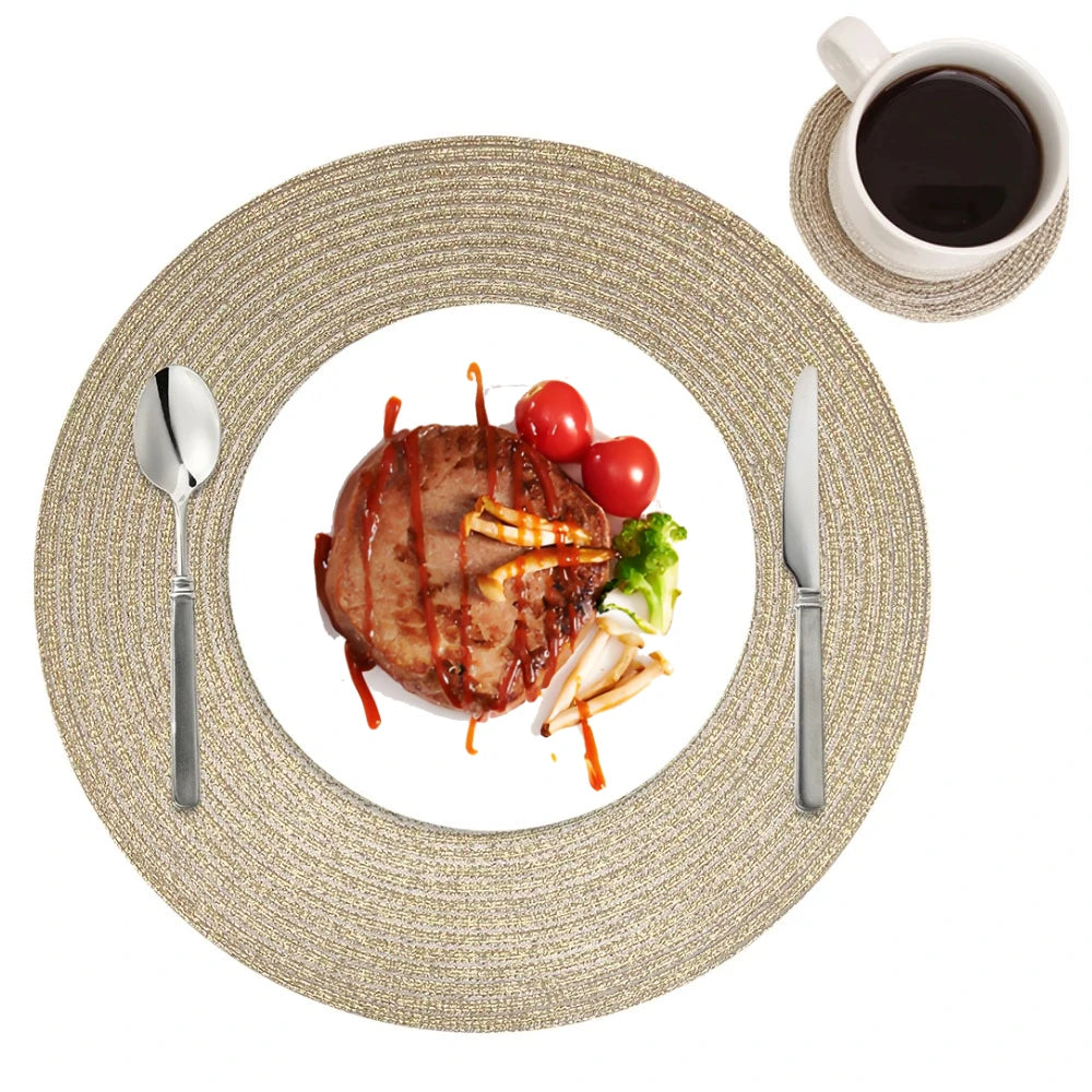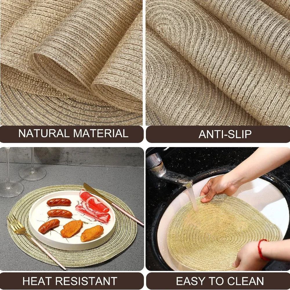 Set of 4/6 34CM Glitter Round Braided Placemats Golden Sliver Circle Place Mats Washable Table Mats for Kitchen Party Wedding