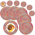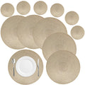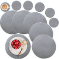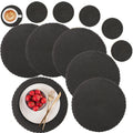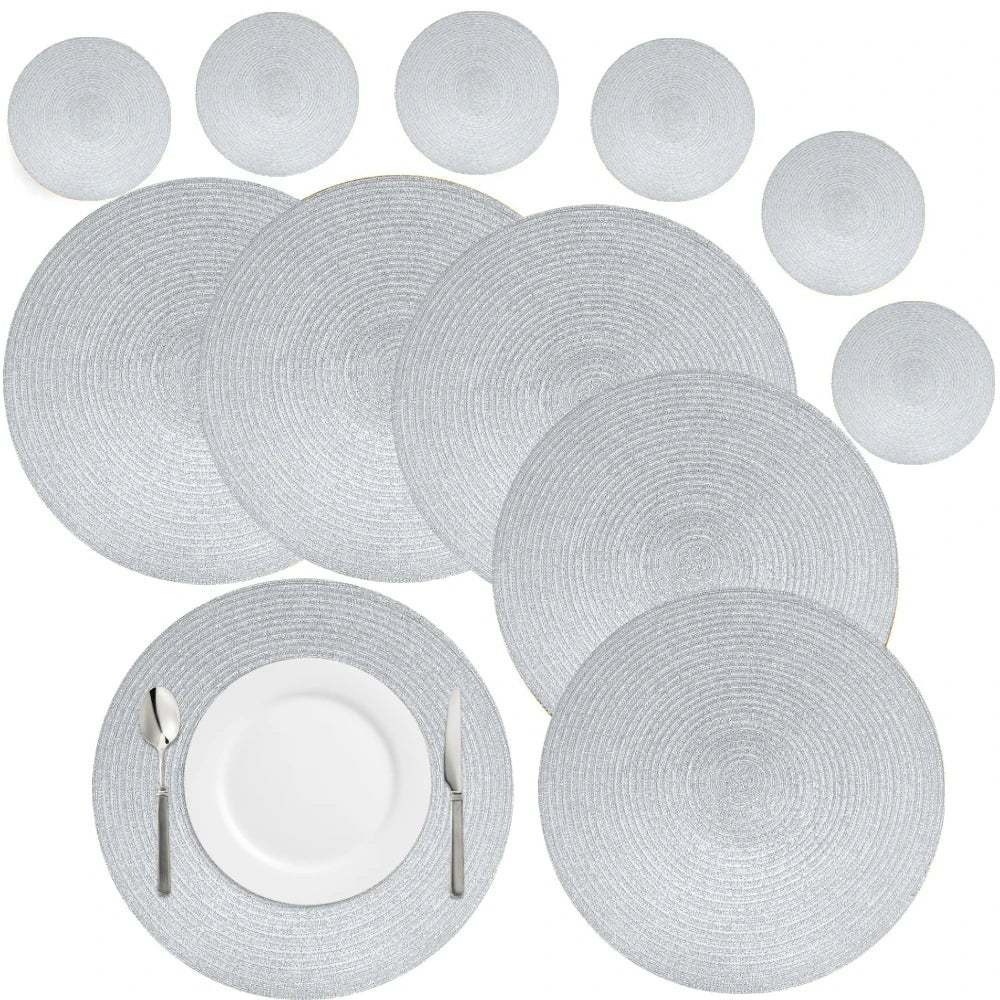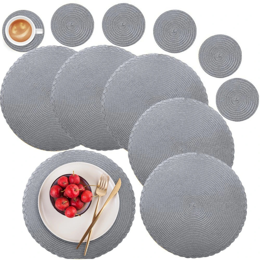 Set of 6 Round Placemats and Coasters Braided Woven Place Mats Washable Heat Resistant Table Mats for Dining Table Kitchen Home
