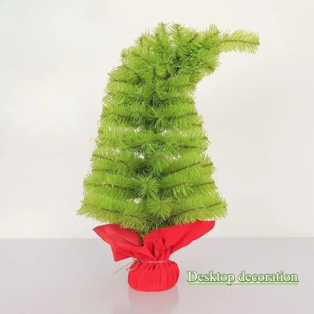 Skew Head Christmas Tree PVC Material Desktop 60cm Small Skew Neck Christmas Tree Green Home Christmas Atmosphere Decoration