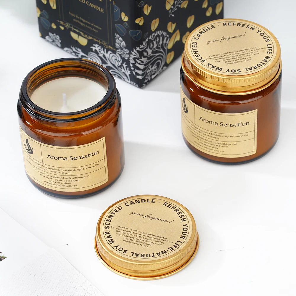 Smokeless Soy Wax Scented Candle 100g-Rosemary Aroma in Amber Glass Jar/ Aromatherapy Candle For Sleep/Home/Gift
