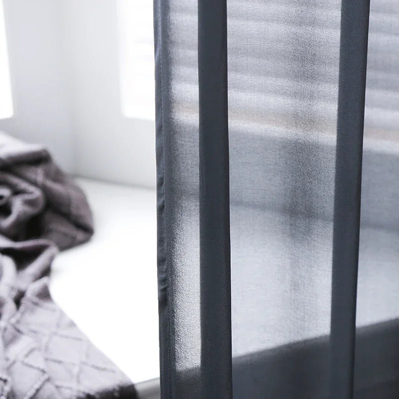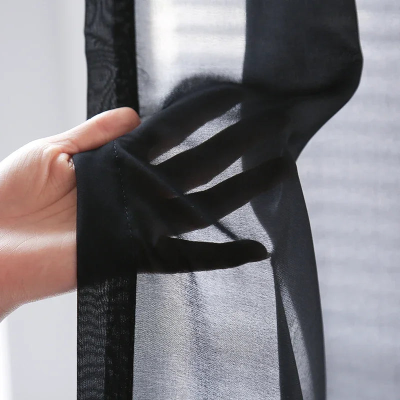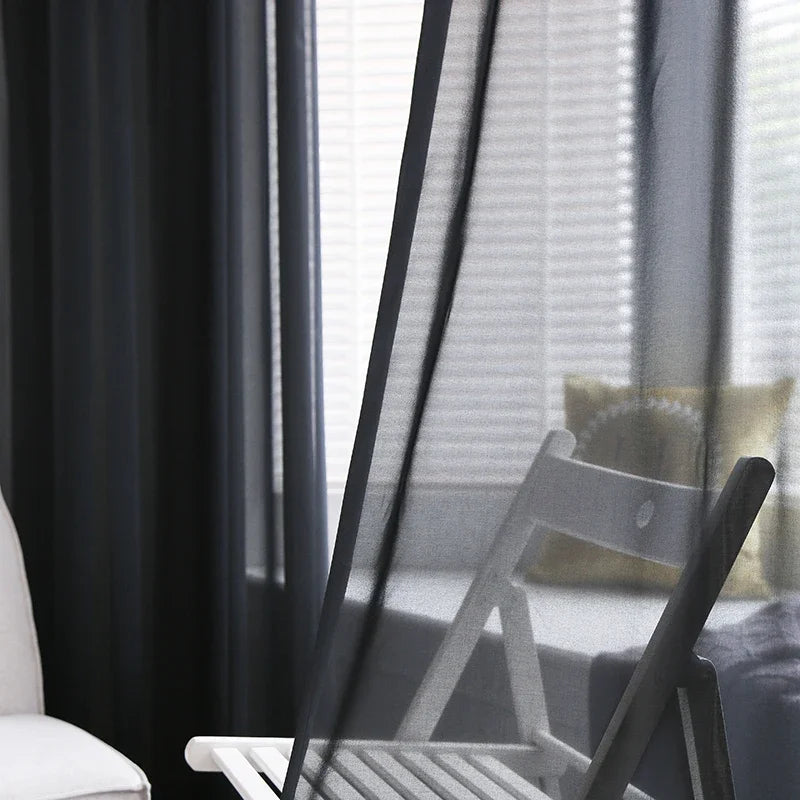 Solid Black Chiffon Sheer Curtains for Living room Window Curtains Modern Organza Tulle Curtains for Bedroom Partition Drapes