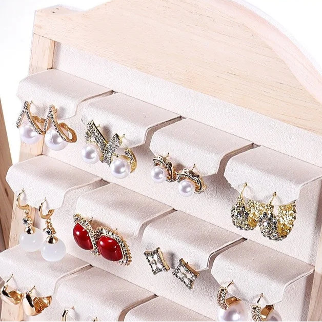 Organize and showcase your collection with our Solid Wood Jewelry Display Stand. Designed for earrings and rings, this rack combines functionality with timeless elegance for both personal and professional use.