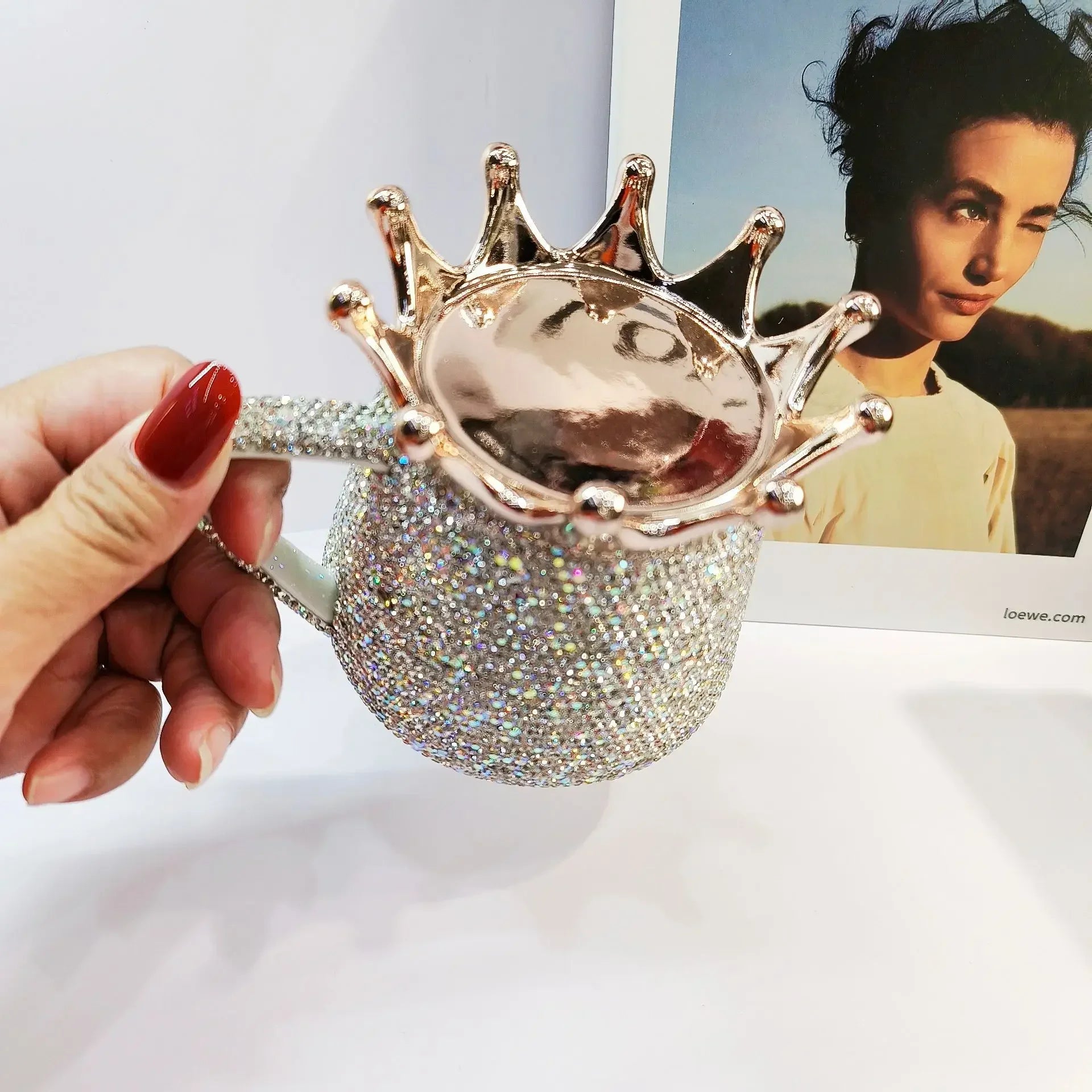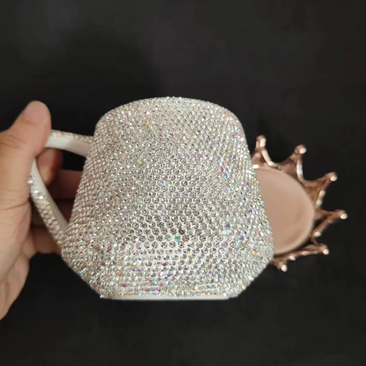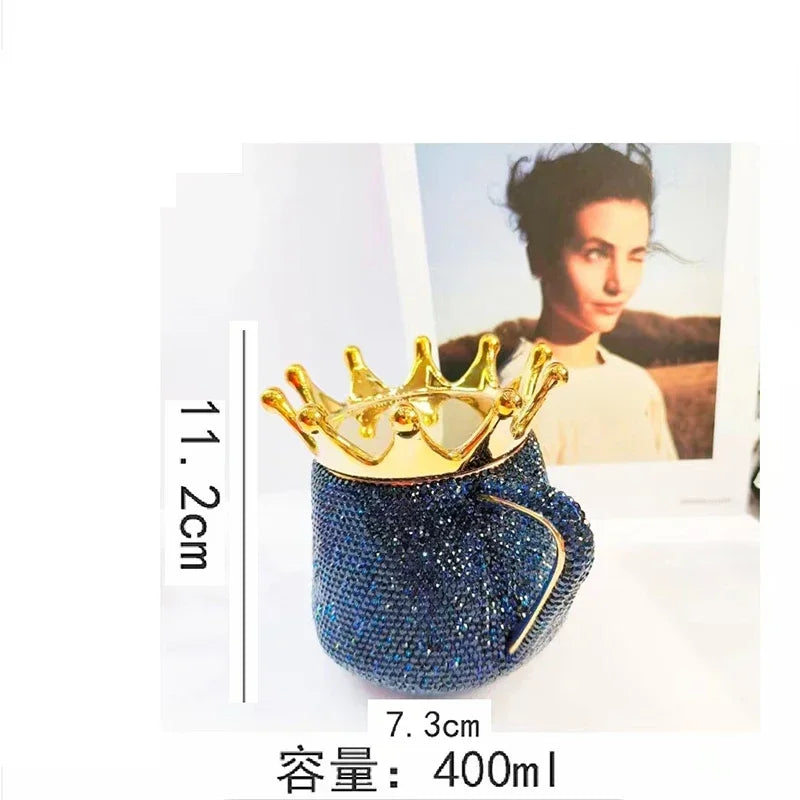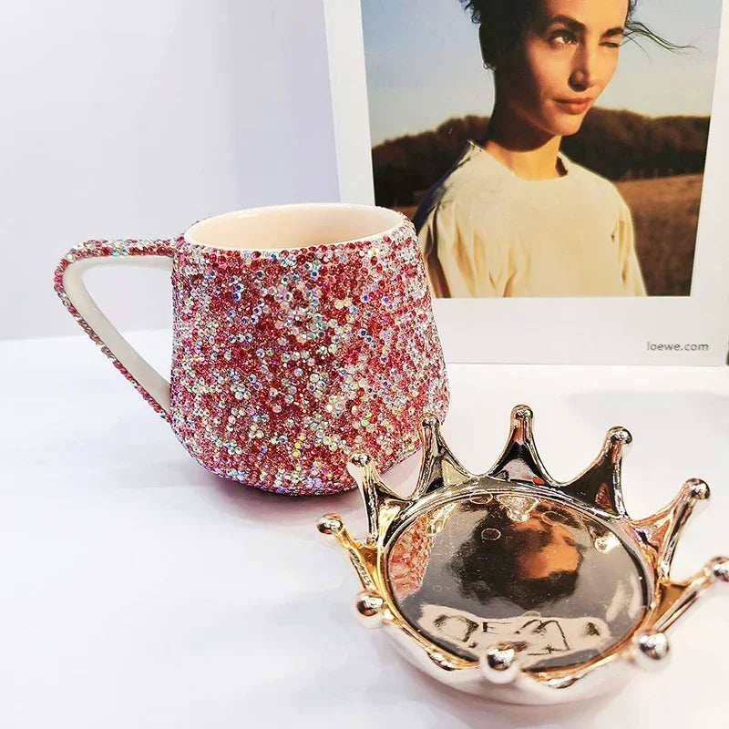 Sparkling Rhinestones Ceramic Mug with Crown Lid Cute Coffee Mug Milk Tea Cup Luxury Creative Water Mugs Bling Gift