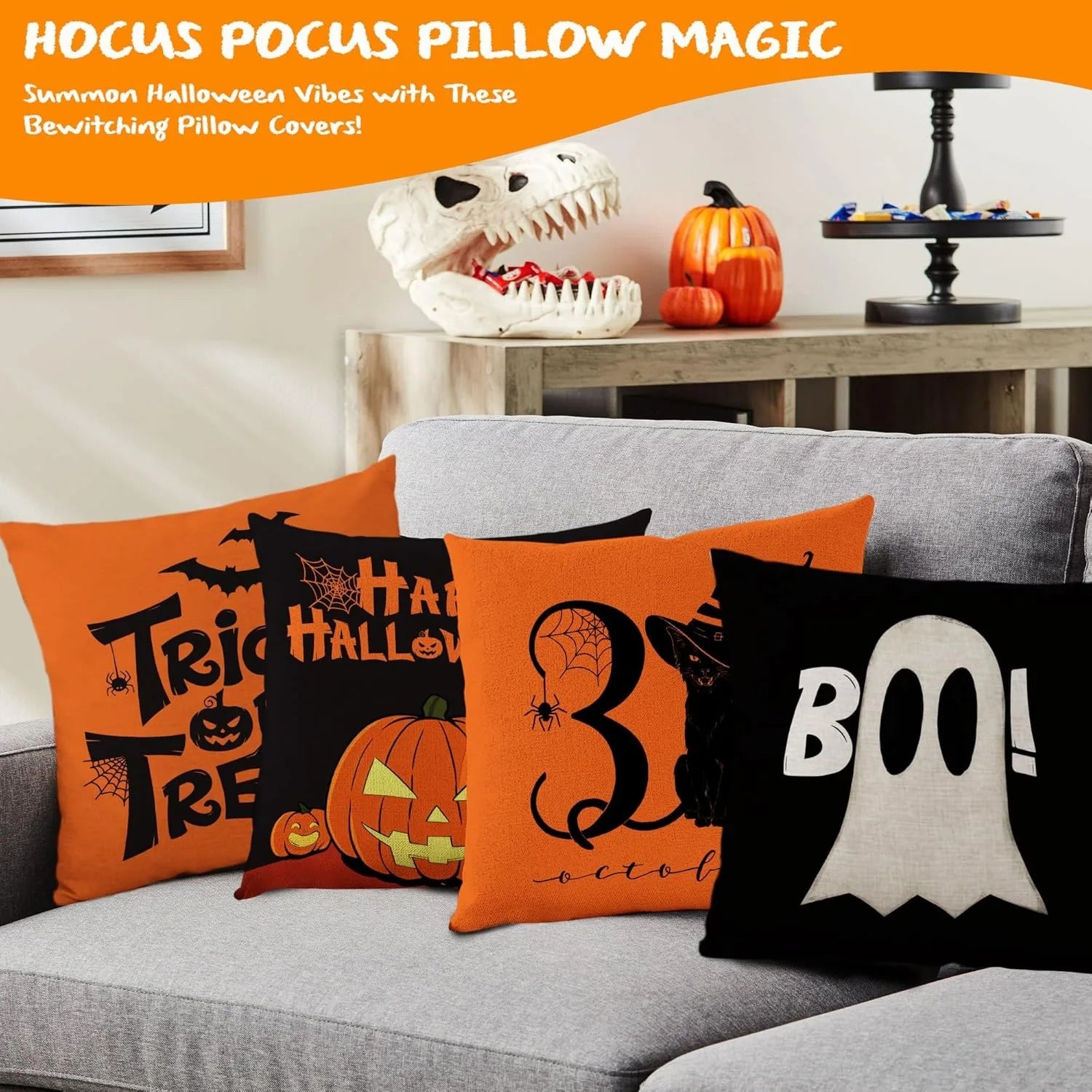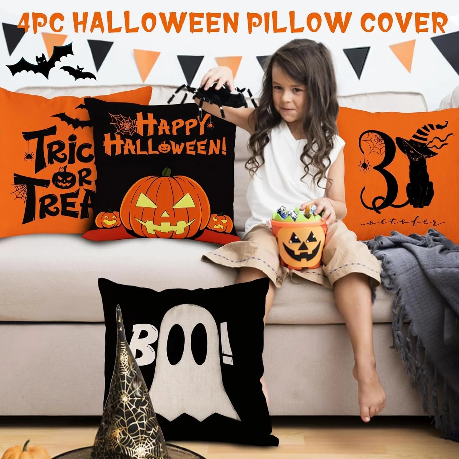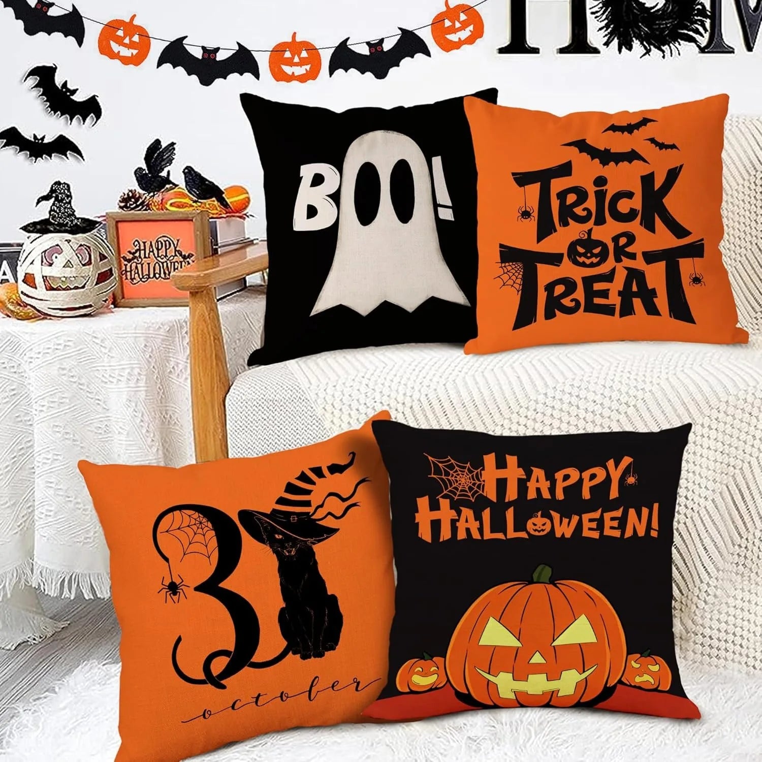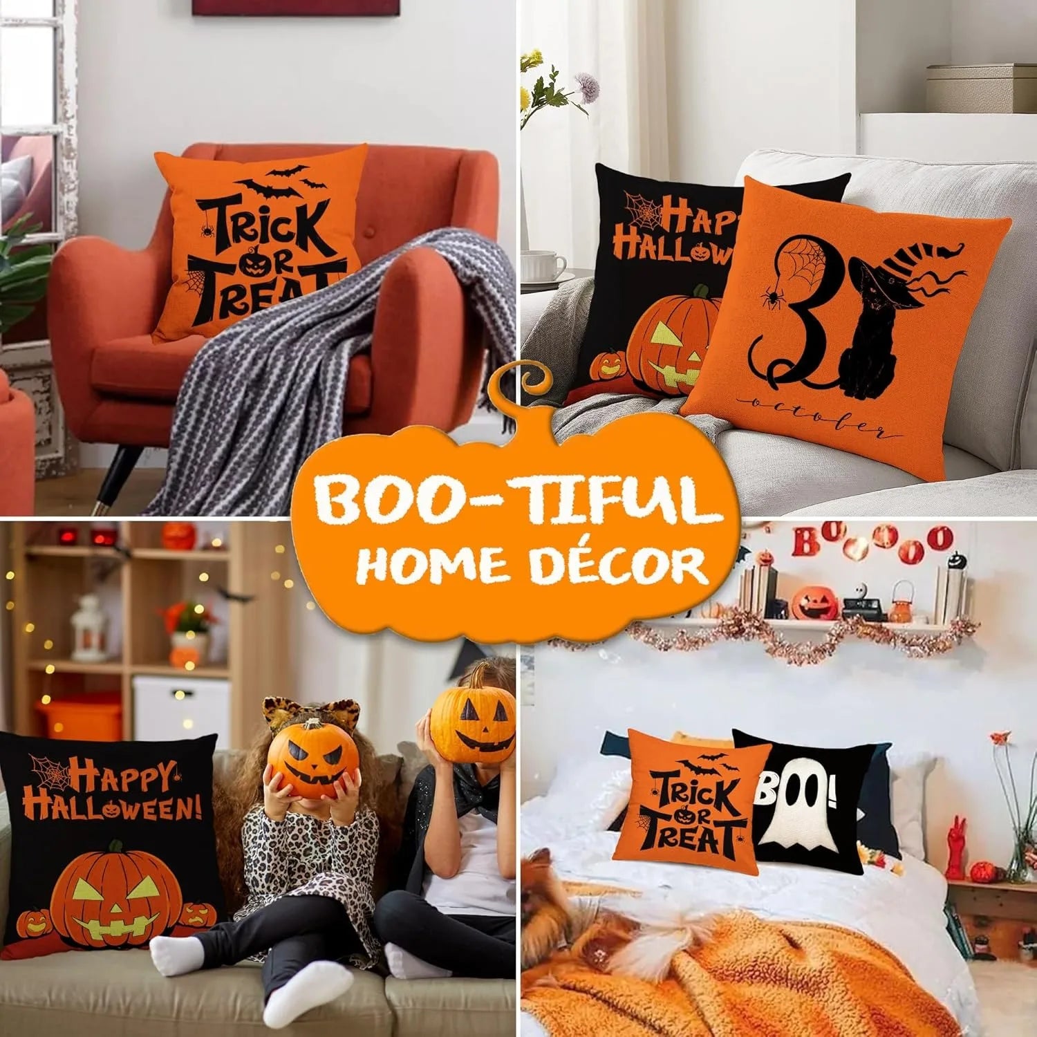 Spooky Halloween Decor: Trick or Treat, Happy Halloween, Boo, and Black Cat with 3 October Pillow Covers Sofa cushion cover,gift