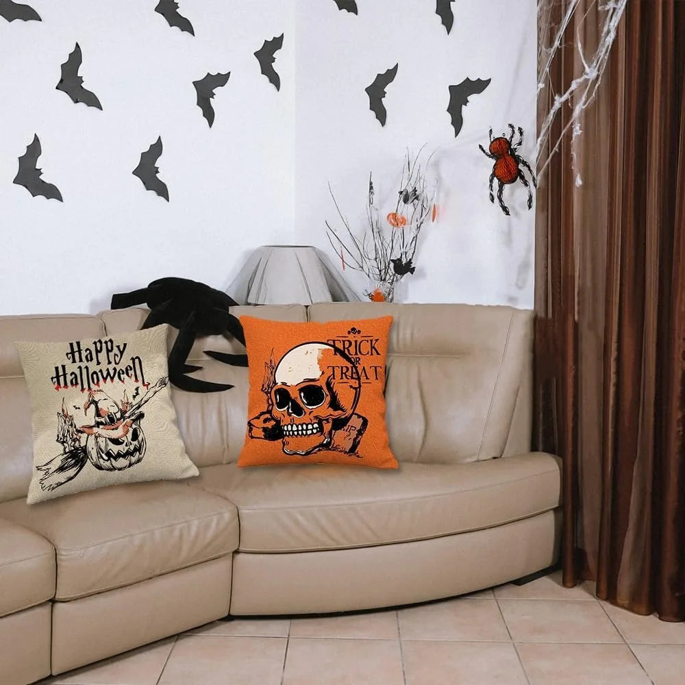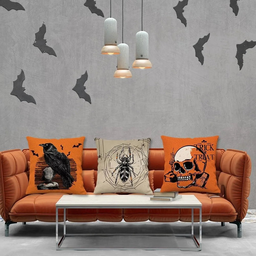 Spooky Halloween Pillows: Trick or Treat, Spider Web, Happy Halloween, and Raven Designs Sofa cushion cover, gift