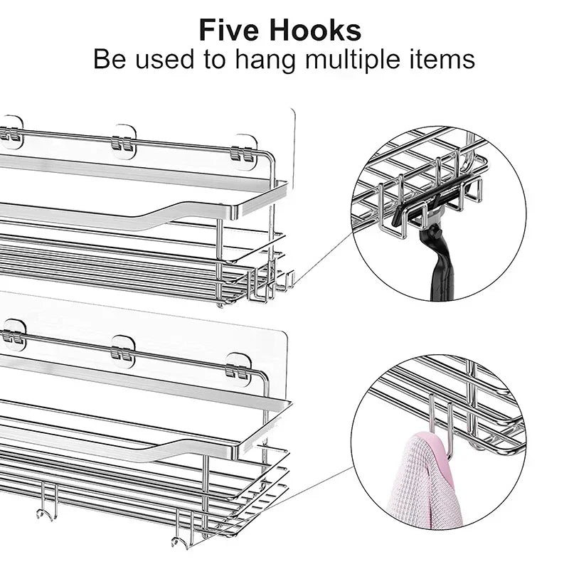 Stainless Steel Kitchen Storage Rack Wall Mounted Bathroom Shelf Organizer Shampoo Holder Storage Shelf Bathroom Basket Holder