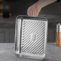 Stainless Steel Rectangular Tray with Lid Multi-Purpose Serving Plate for Dumplings BBQ Catering Food Storage Home Restaurant